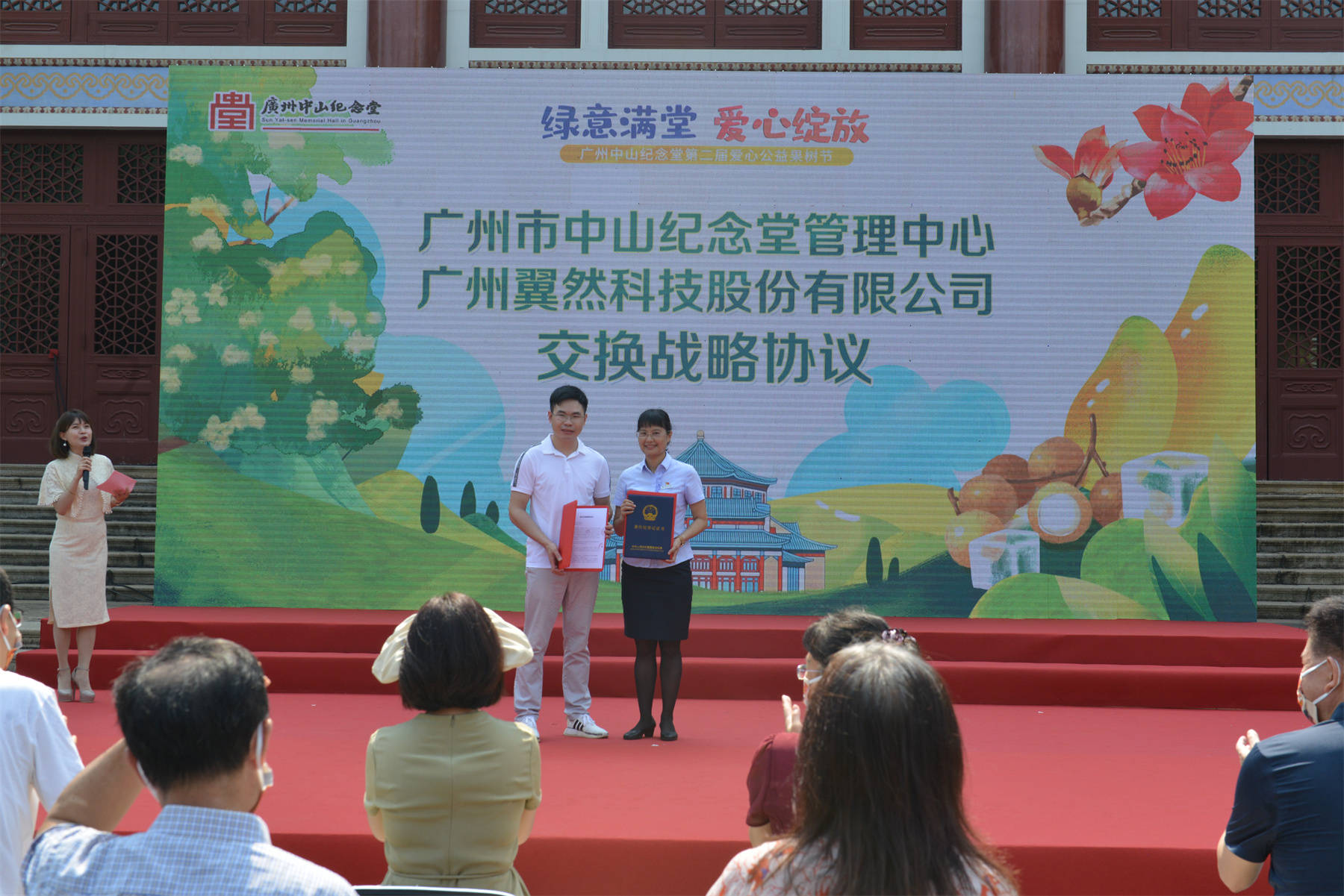 7月29日,“绿意满堂 爱心绽放”——广州中山纪念堂第二届爱心公益果树节举行。本次果树节上,广州中山纪念堂生物多样性保护两大举措“绿化资源智慧管理系统v1.0”和“‘诗情绿意’生态历史文化游径2.0版”正式首发,市民在手机上登录系统,可在线全景游览中山纪念堂,详细了解每个景点和每棵树木。新开发的系列文创产品也于公益果树节首发。