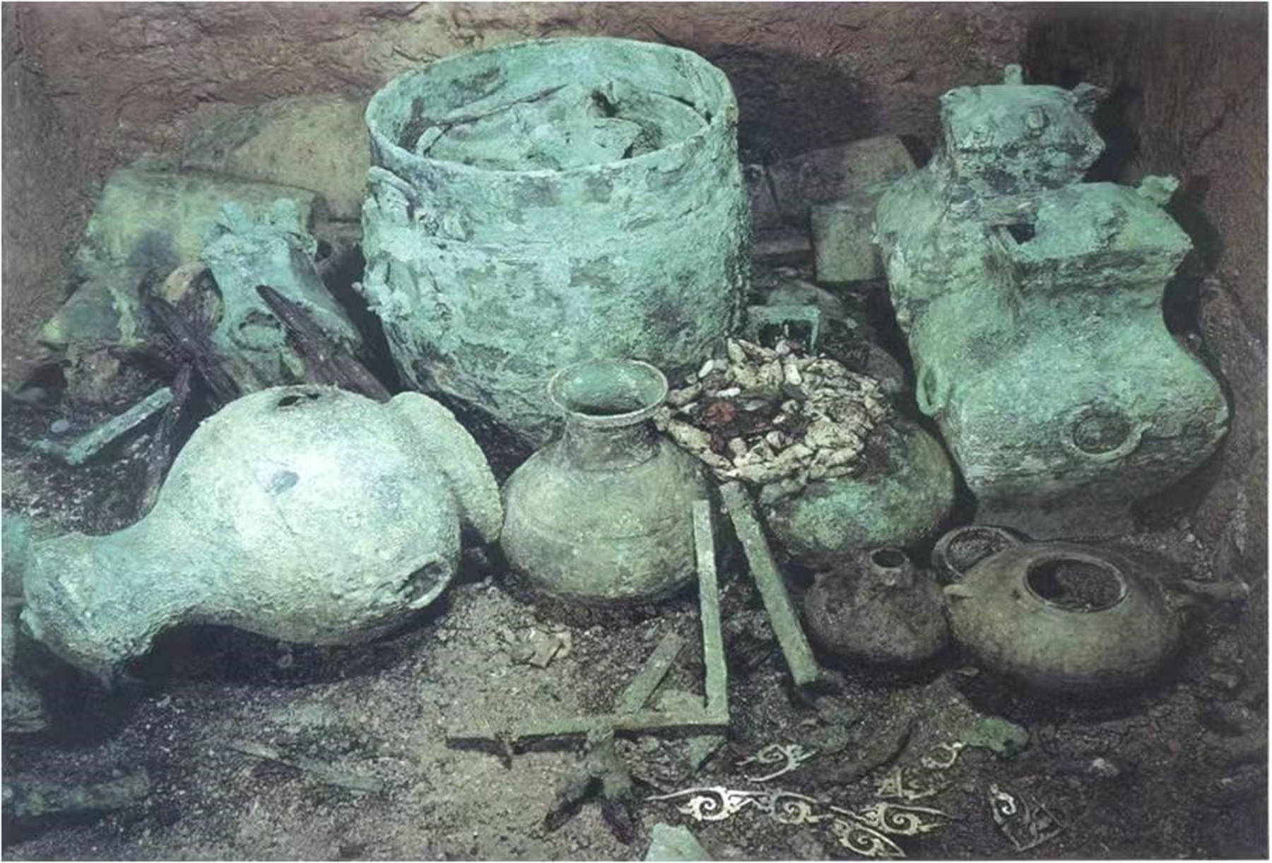 我轻步跨入东耳室,凭借手电筒的光柱,映入眼帘的是东耳室内有大铜壶、铜钫、铜提筒等排列有序地放在一起。最令人惊异的是沿着石壁脚下,一个个铜钟、石编磬整齐地排列着,仿佛墓主刚刚离去,那悠扬的钟乐声,依稀在室中回荡。我初步判断此墓下葬后还没有人涉足过,古墓没有被盗。这是一座千载难逢保存完整的西汉石室大墓!