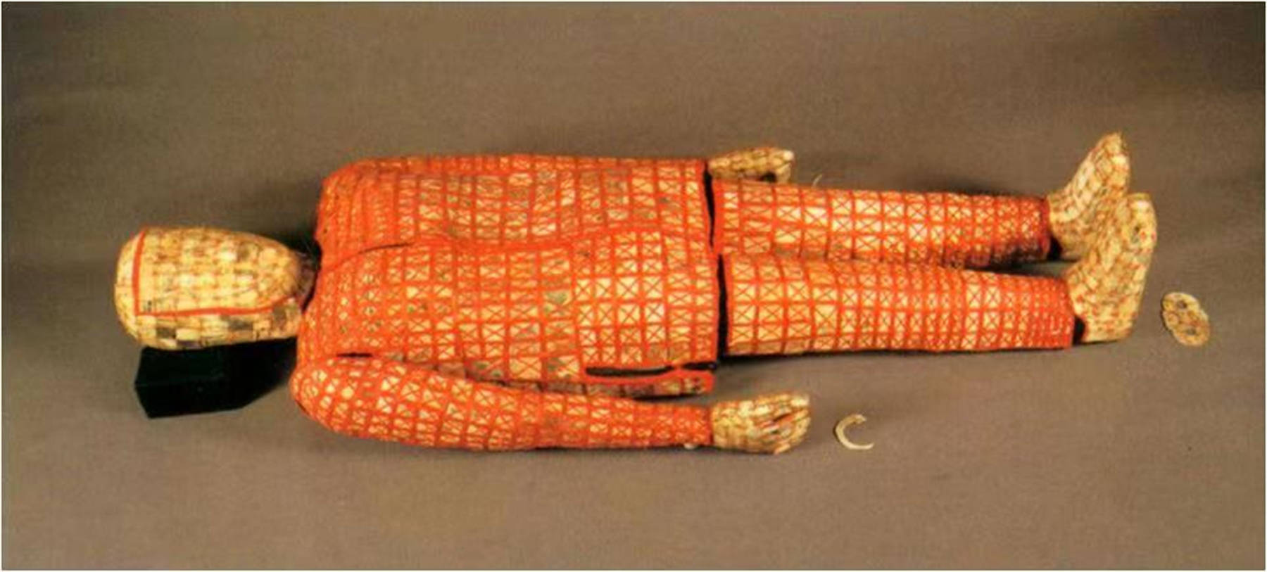 墓主身穿丝缕玉衣,长1.73米。共用了2291片玉。这是我国迄今所见的年代最早的一套形制完备的玉衣,出土时玉片散落在地,经三年多时间才完成修复。