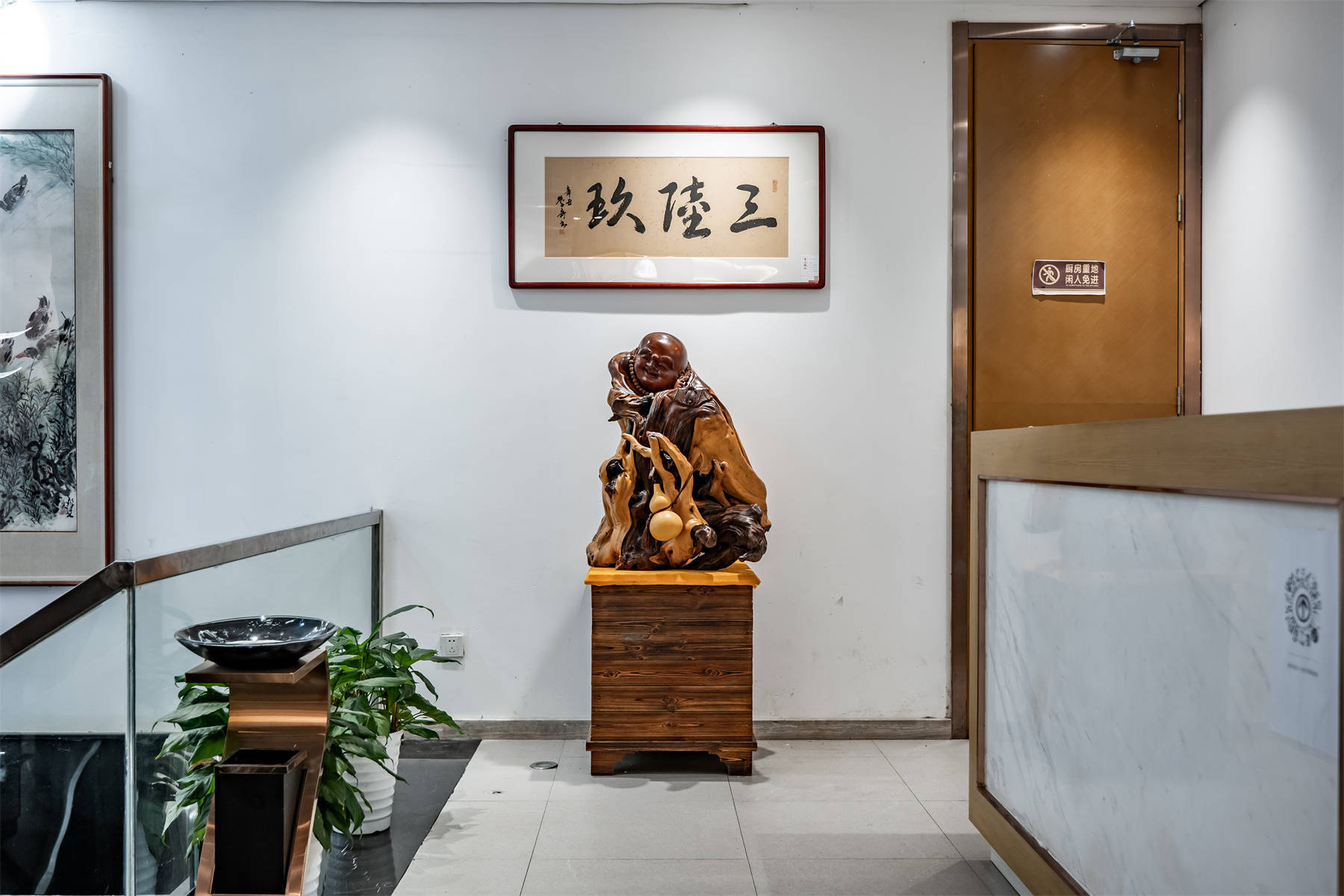 三陆玖环境优雅,以中式传统文化为主调,设计巧妙,古朴自然,将现代简约风格与传统文化相结合,整体呈现出文化底蕴的气息,充分展现了中国传统建筑艺术的美。在三陆玖,可欣赏,可收藏,可泼墨,可品茶,可赏花,可品香,可交友。这里有美食可尝,有内容可看,有风景可赏,有知识可学,有故事可讲,有艺术可享,不仅令人心旷神怡,震撼心灵,更能体悟文化内涵,深刻体悟人生。三陆玖文化底蕴深厚,人文环境高雅,许多文艺界和书画界的老前辈常常在此谈古论今,挥毫泼墨,问道千秋,名家大作悬于三陆玖之厅堂,更增添了三陆玖的文化魅力。