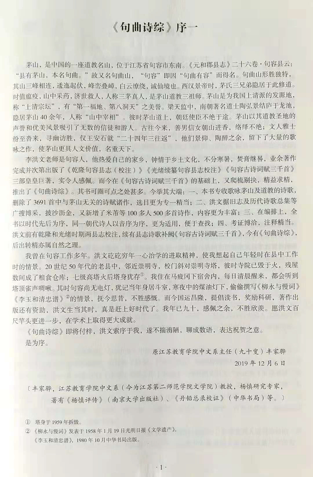 ↑江苏省道教协会副秘书长、国家级非物质文化遗产“茅山道教音乐”代表性传承人、 茅山道教上清派七十八代传人何春生道长书赠《句曲诗综》之作品。