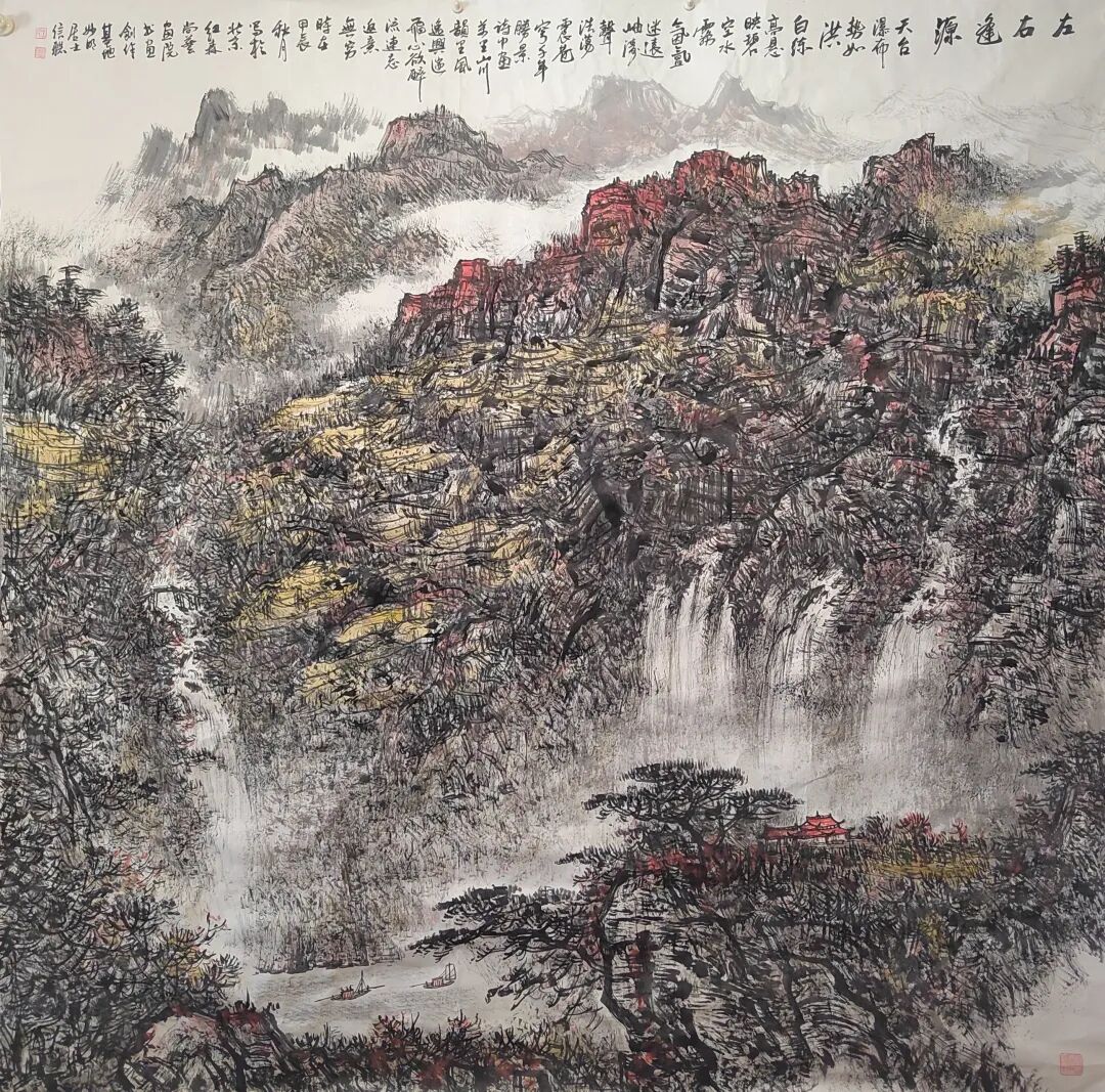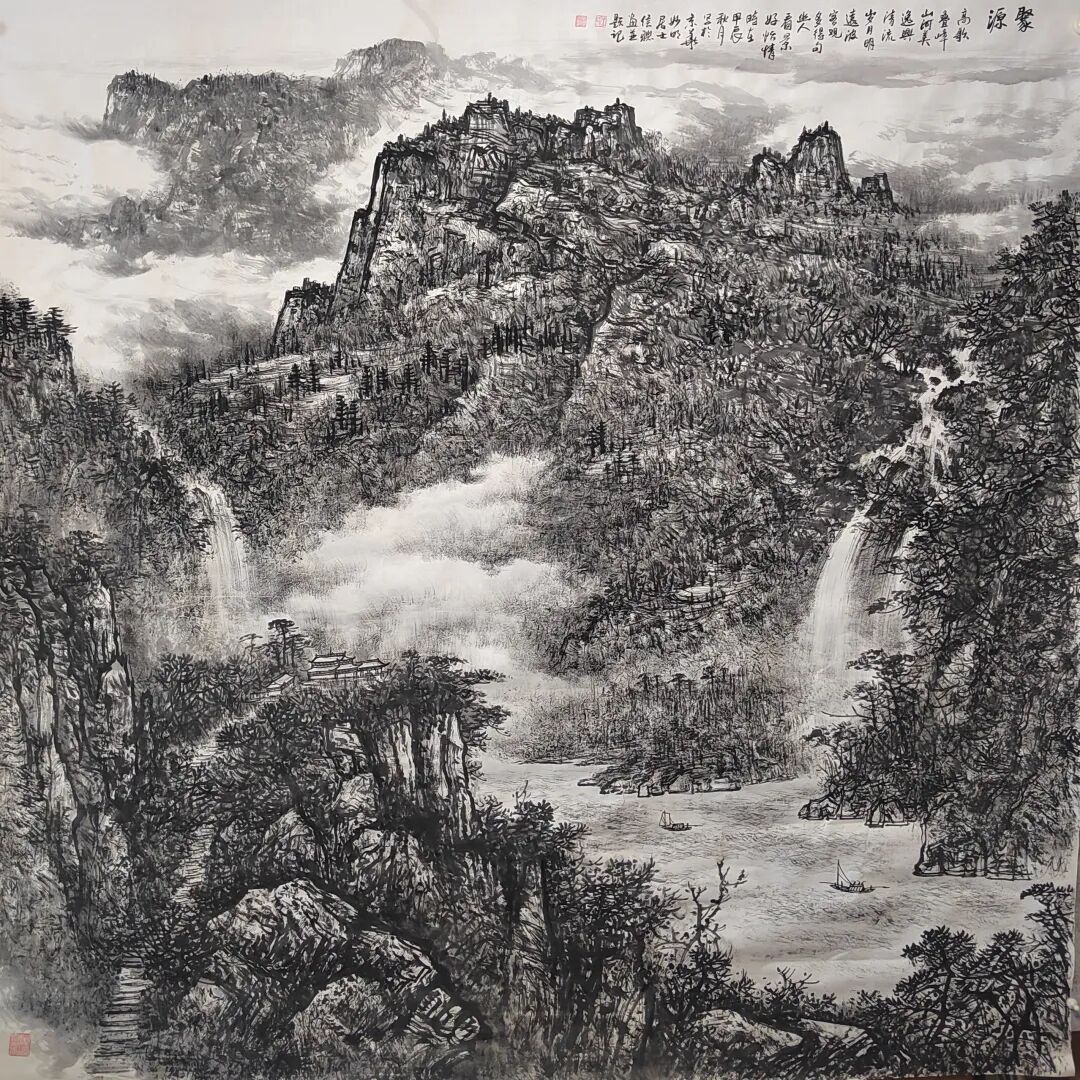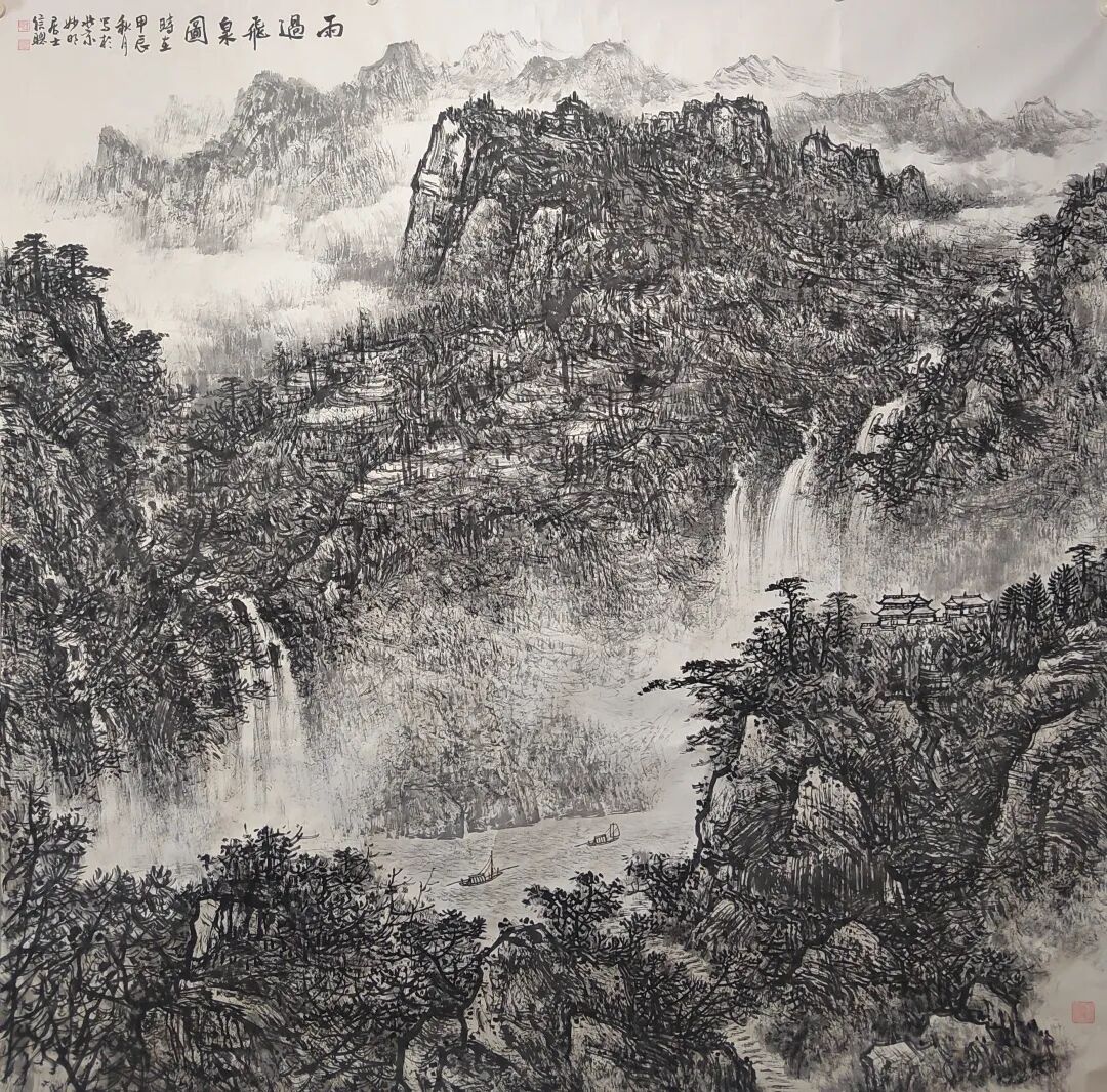 他擅长通过点、线、墨的层次变化,营造巴蜀山水的烟雨迷蒙与太行山脉的雄浑壮阔,代表作《川西人家》《太行醉墨》等以“虚实相生”的技法展现山河的诗意与哲学意境。