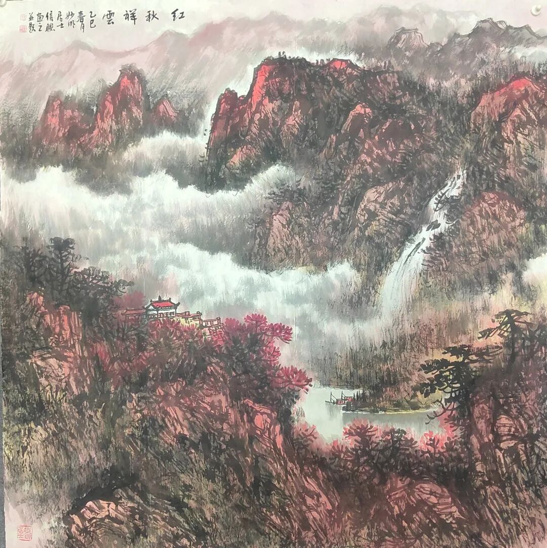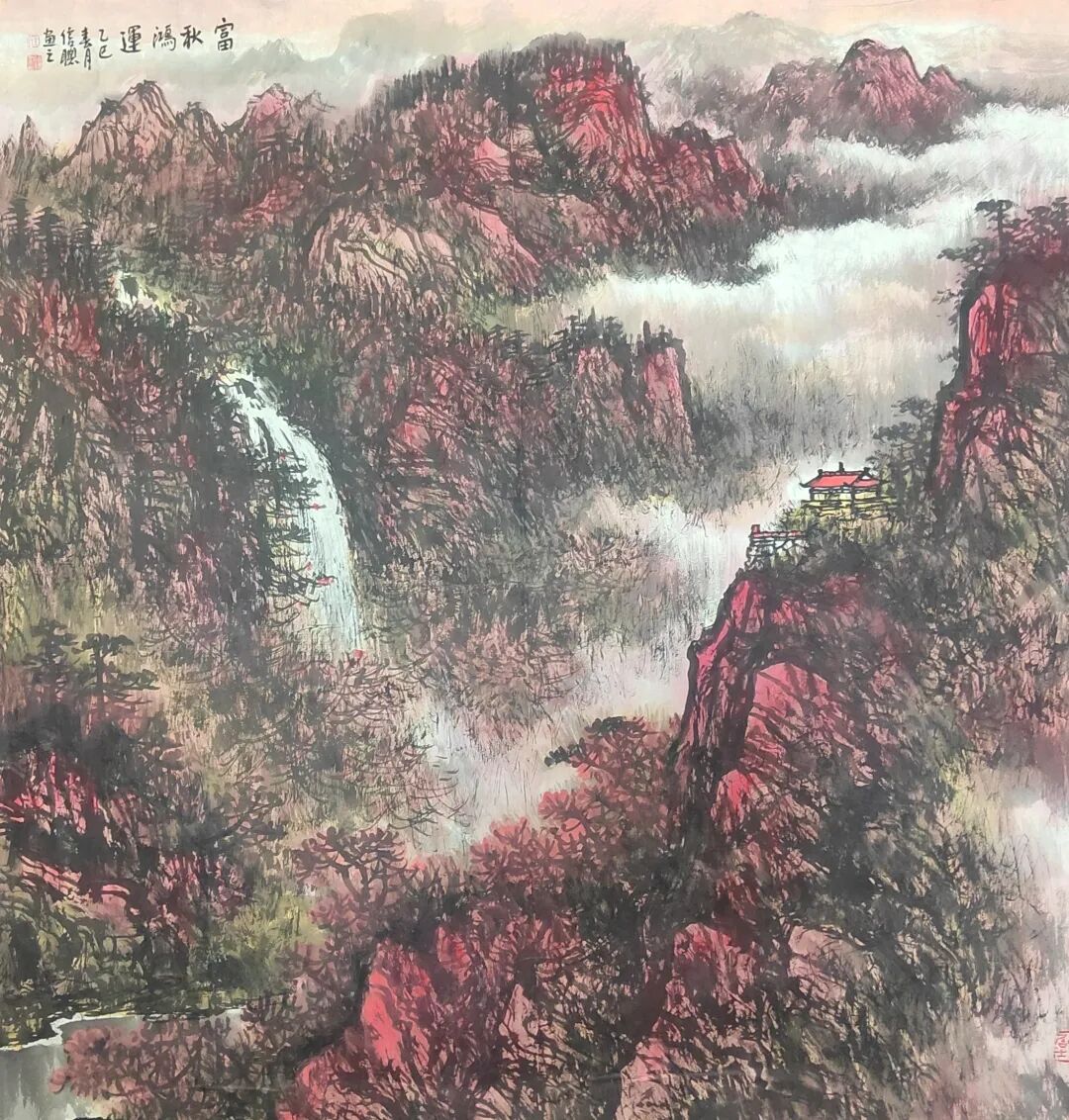 王信聪的山水画以“厚积薄发”为核心理念,既承袭宋元文人画的清逸传统,又融入现代审美意识。其作品如《山居之秋》《佳秋》《溪山秋色》多次在中国美术家协会主办的展览中获最高奖,被评价为“色泽亮丽、云水飞动”,兼具传统笔墨的苍劲与现代构图的动态感。