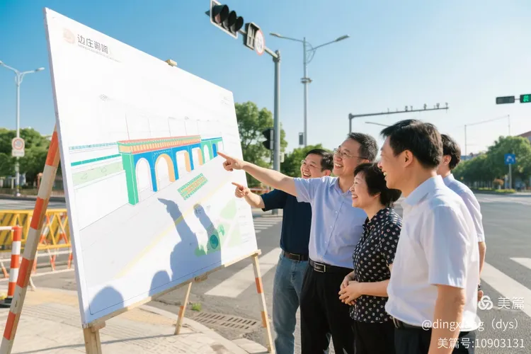 前几日约发小回老宅基地游玩,远远看见施工队带着机械往边庄闸去。正要上前打听,路口竖起的施工模拟图板吸引了我们 --