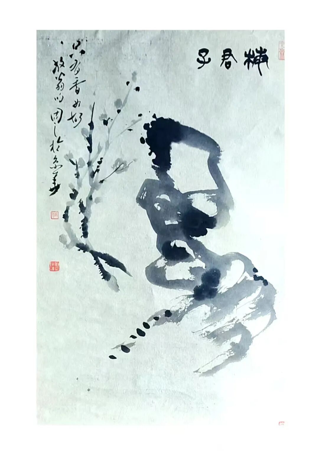 国画 《梅石图·梅君子》 刘锁祥写