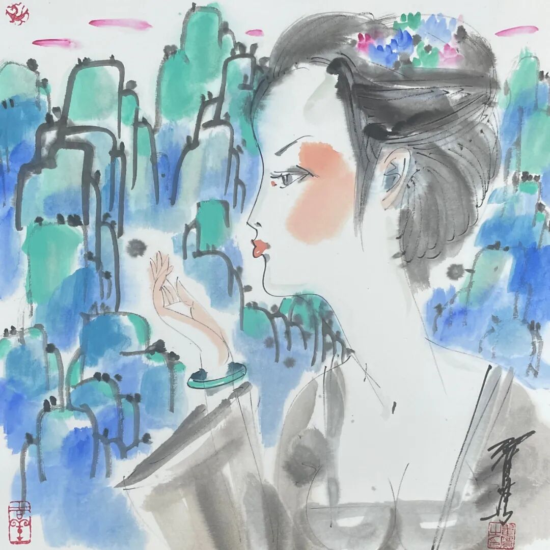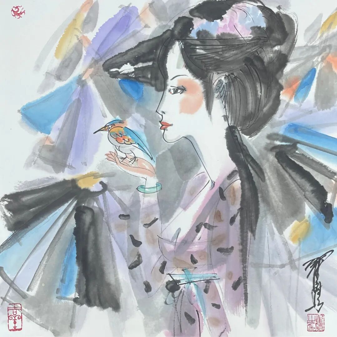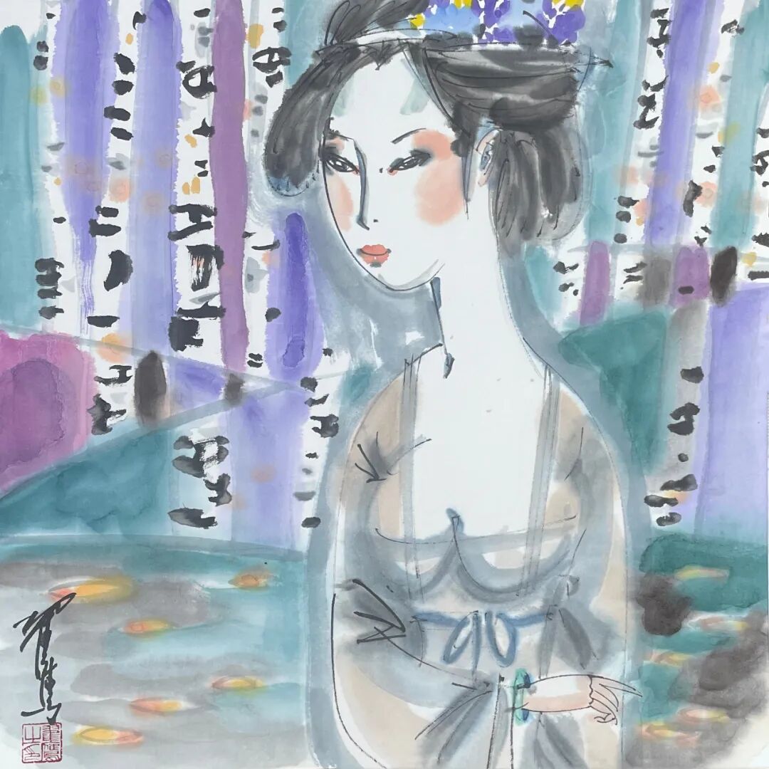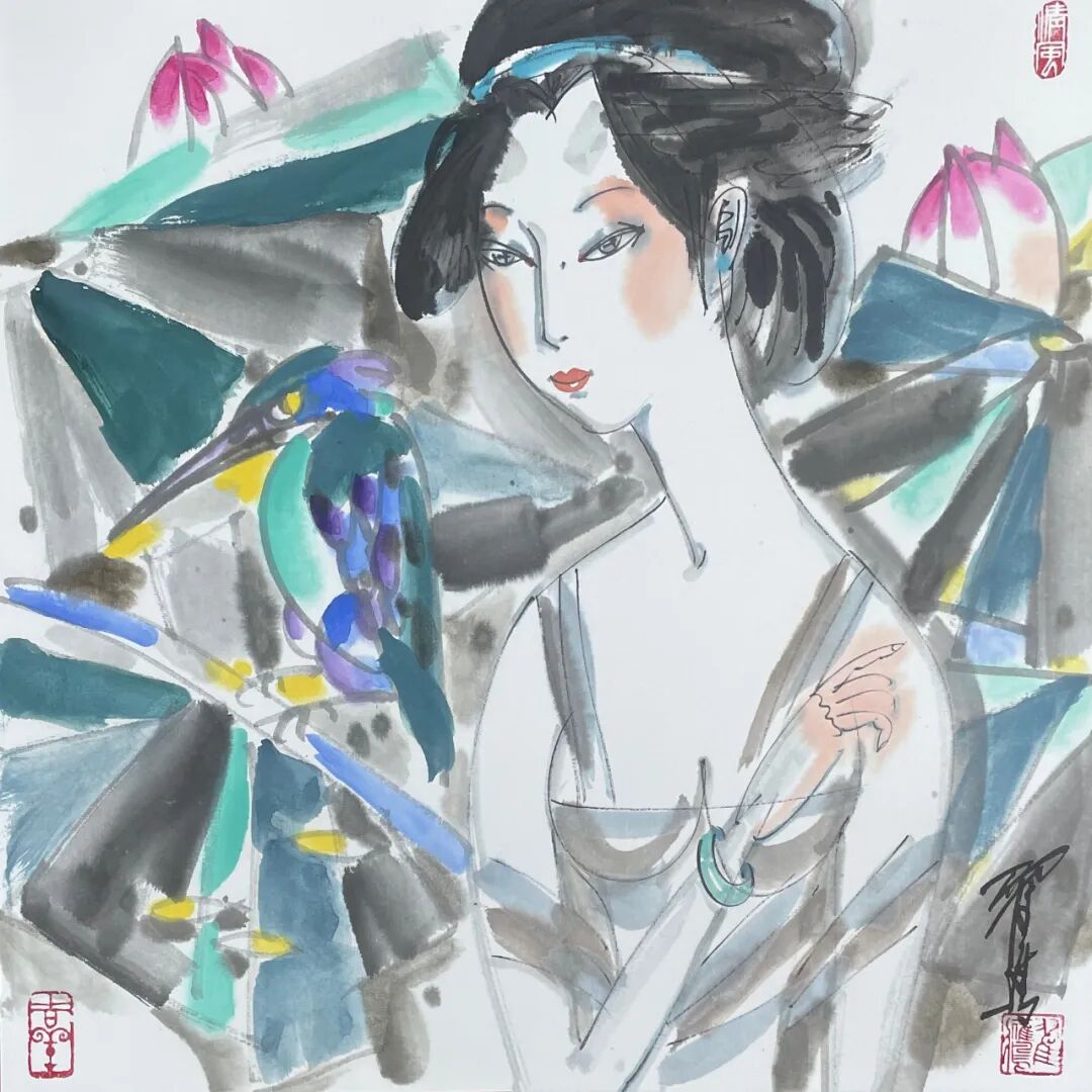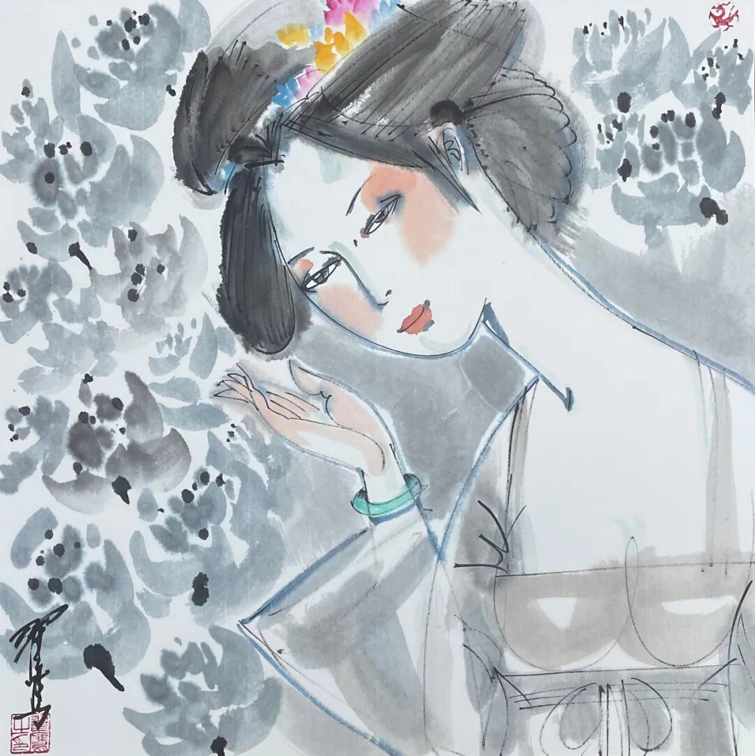 翟鹰 《临风》纸本水墨 50x50cm 2025