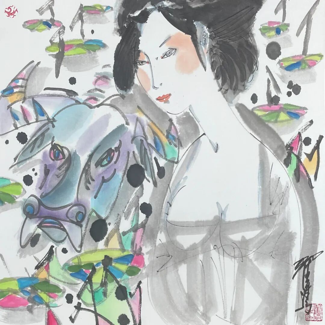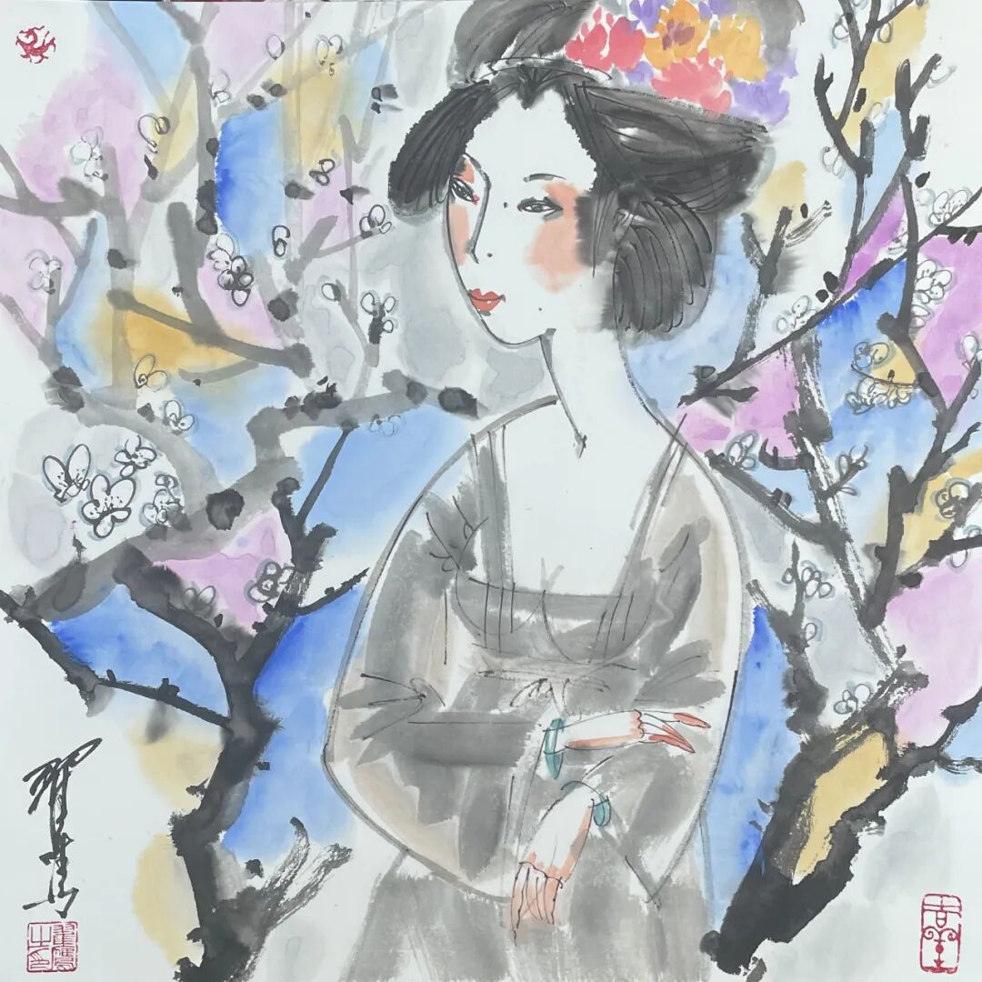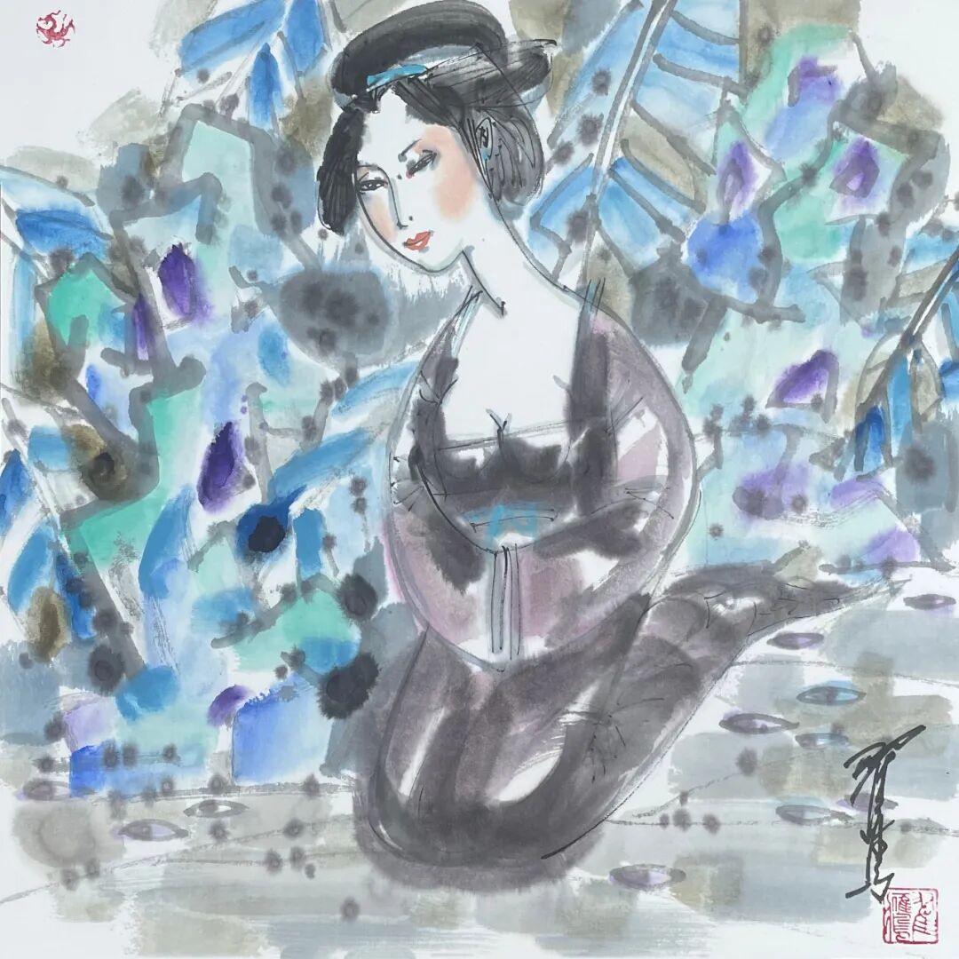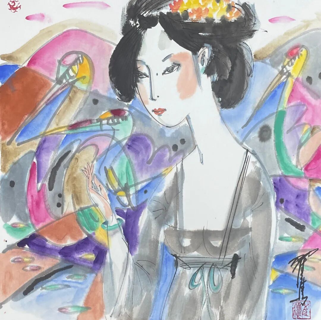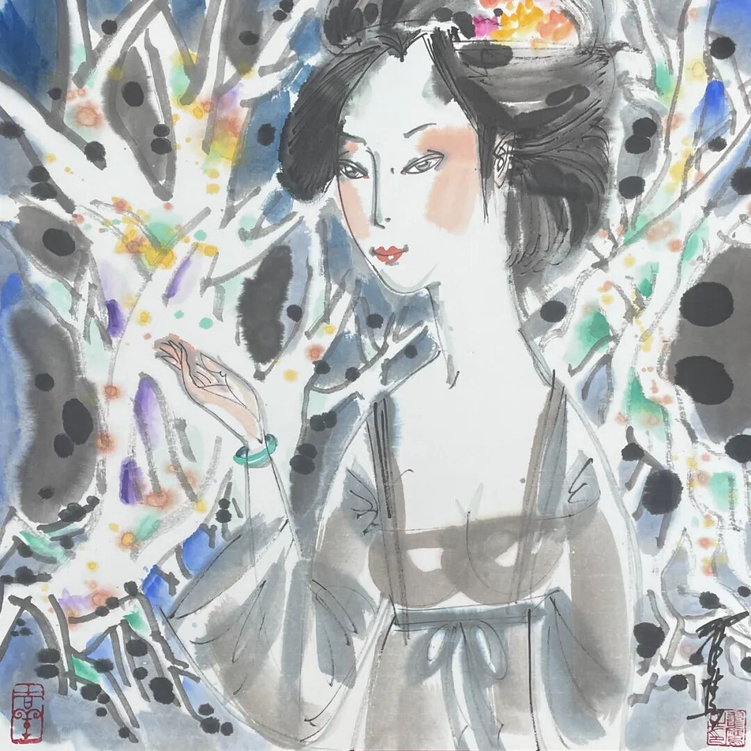翟鹰 《唐韵》纸本水墨 50x50cm 2025