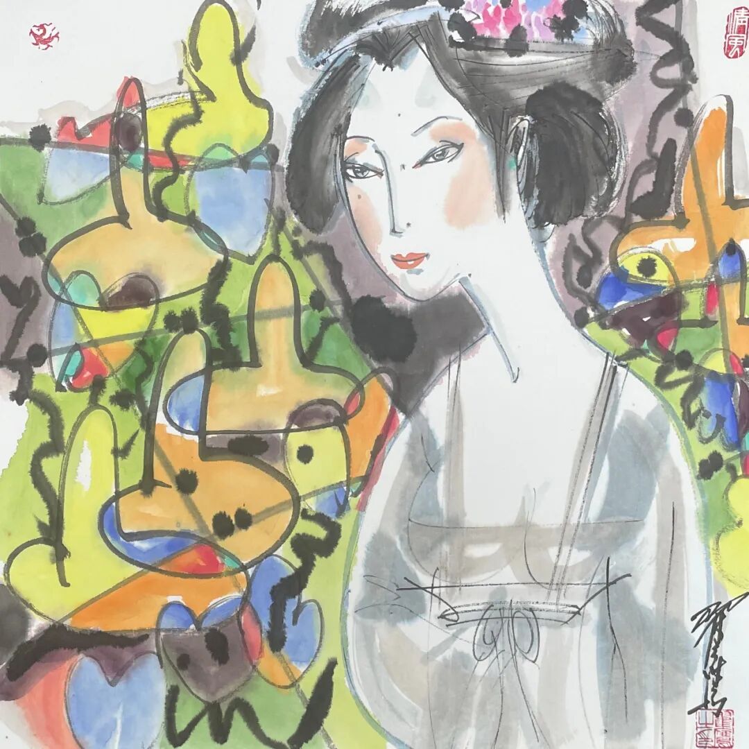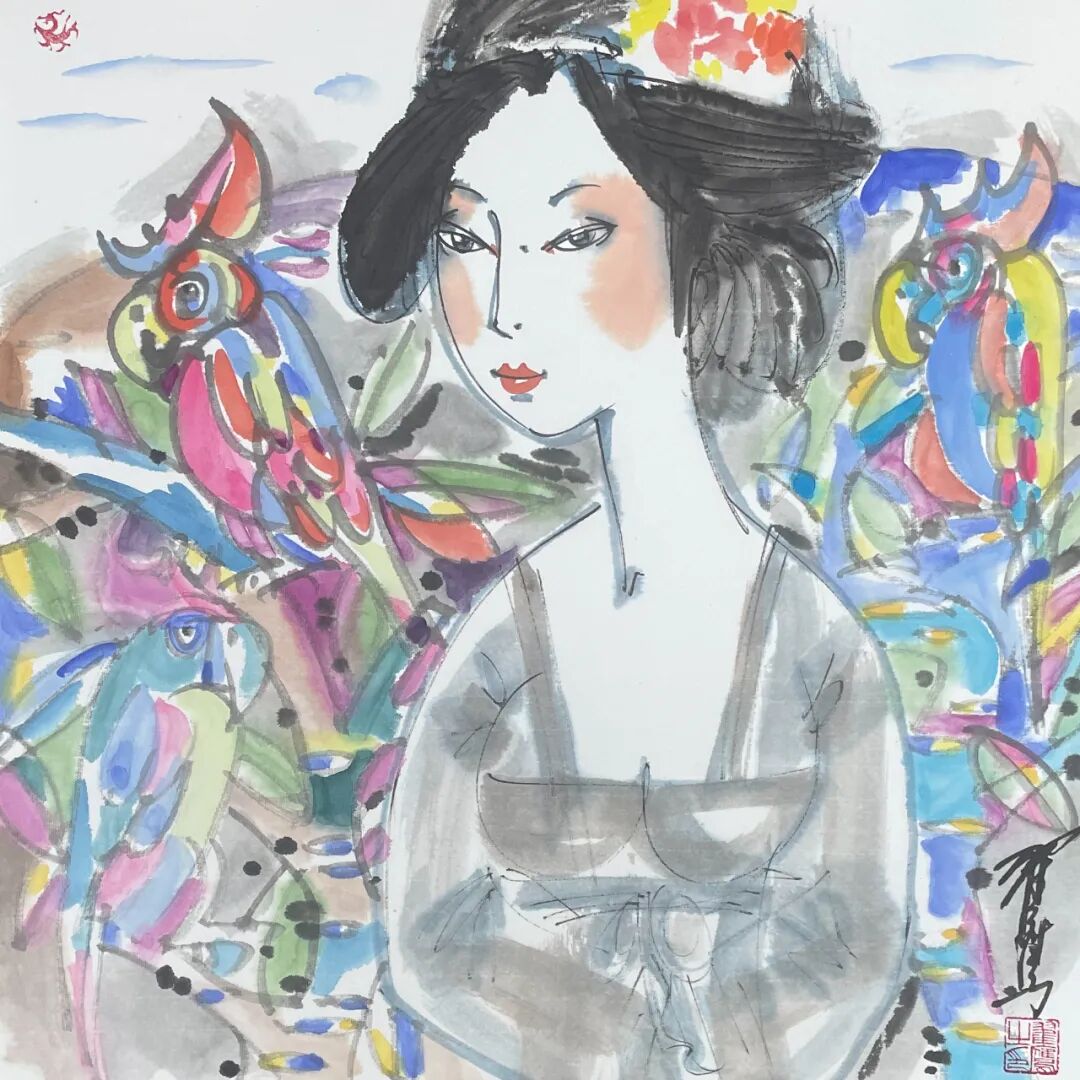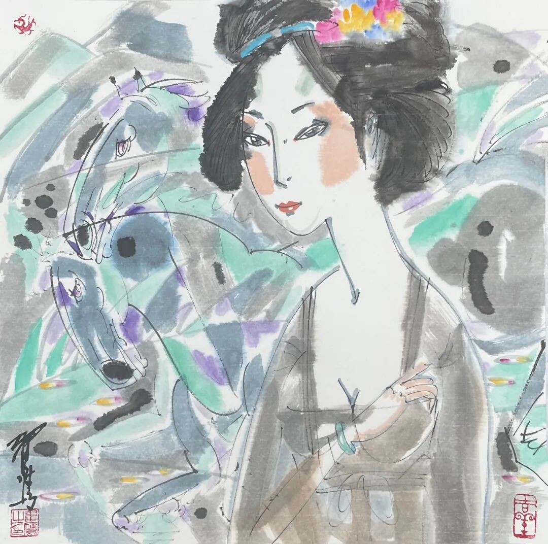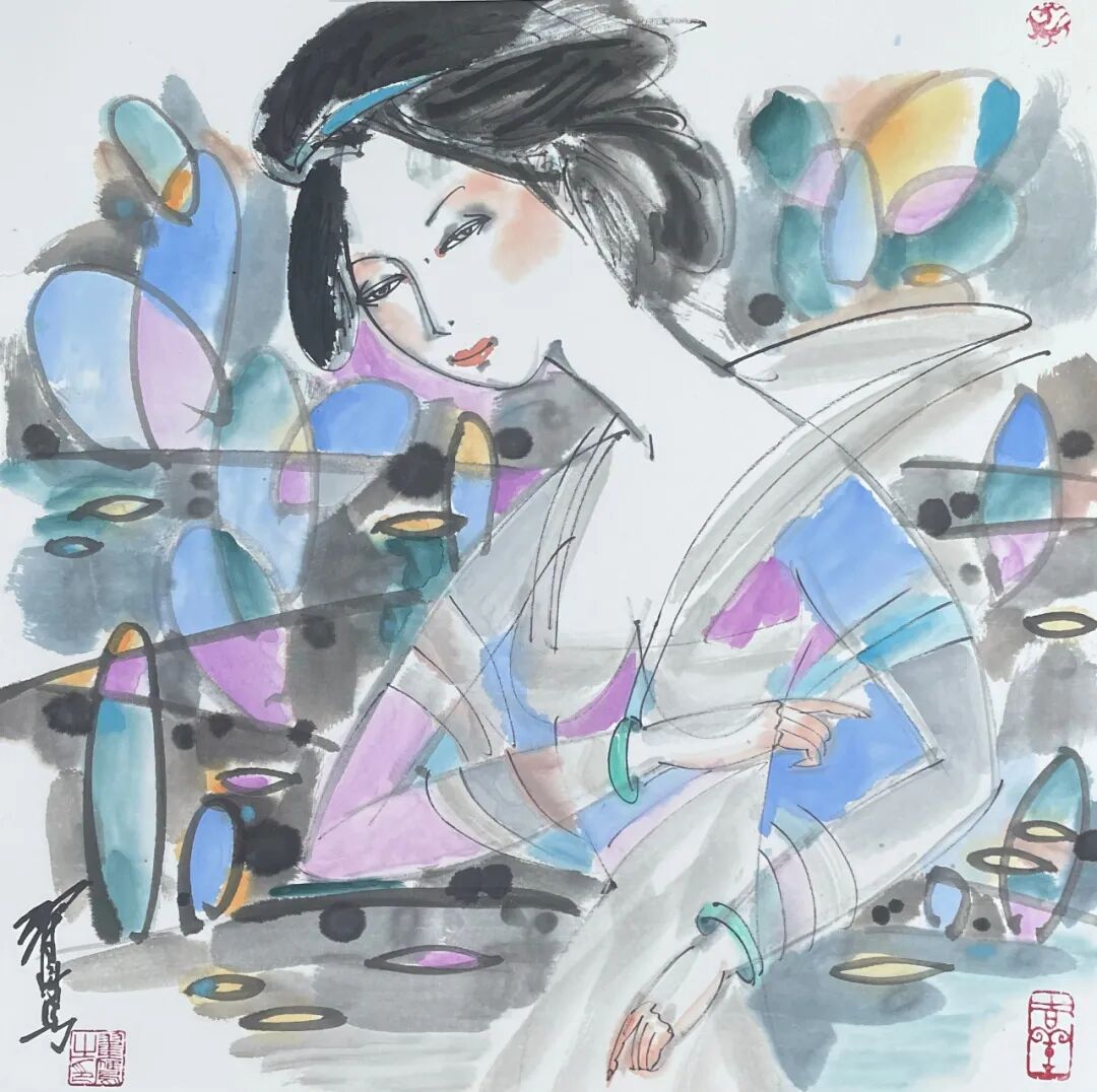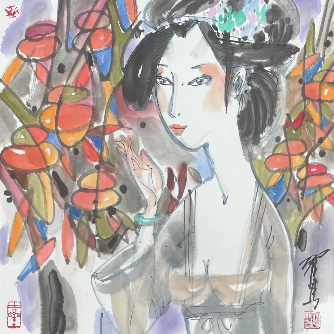 翟鹰 《唐韵》纸本水墨 50x50cm 2025