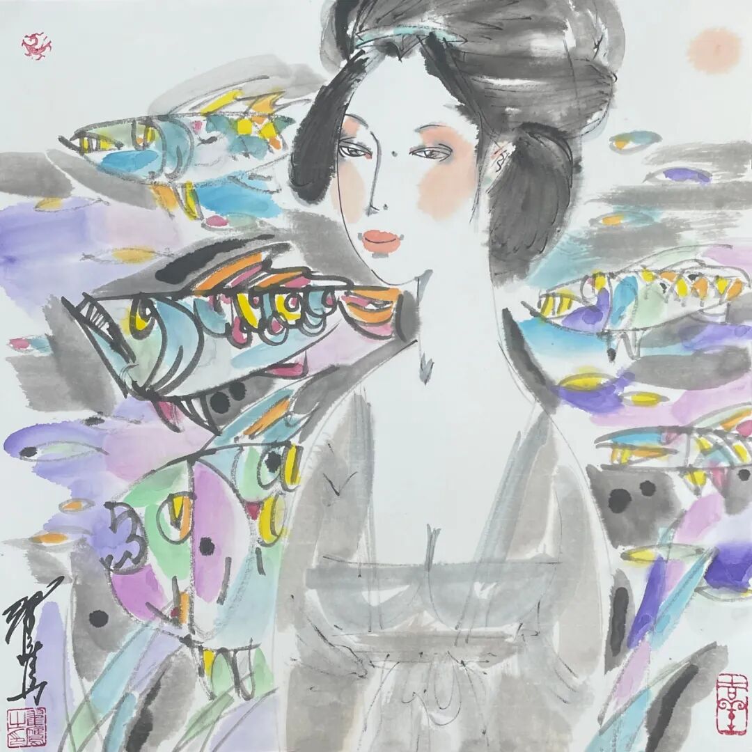 翟鹰 《鱼之乐》纸本水墨 50x50cm 2025