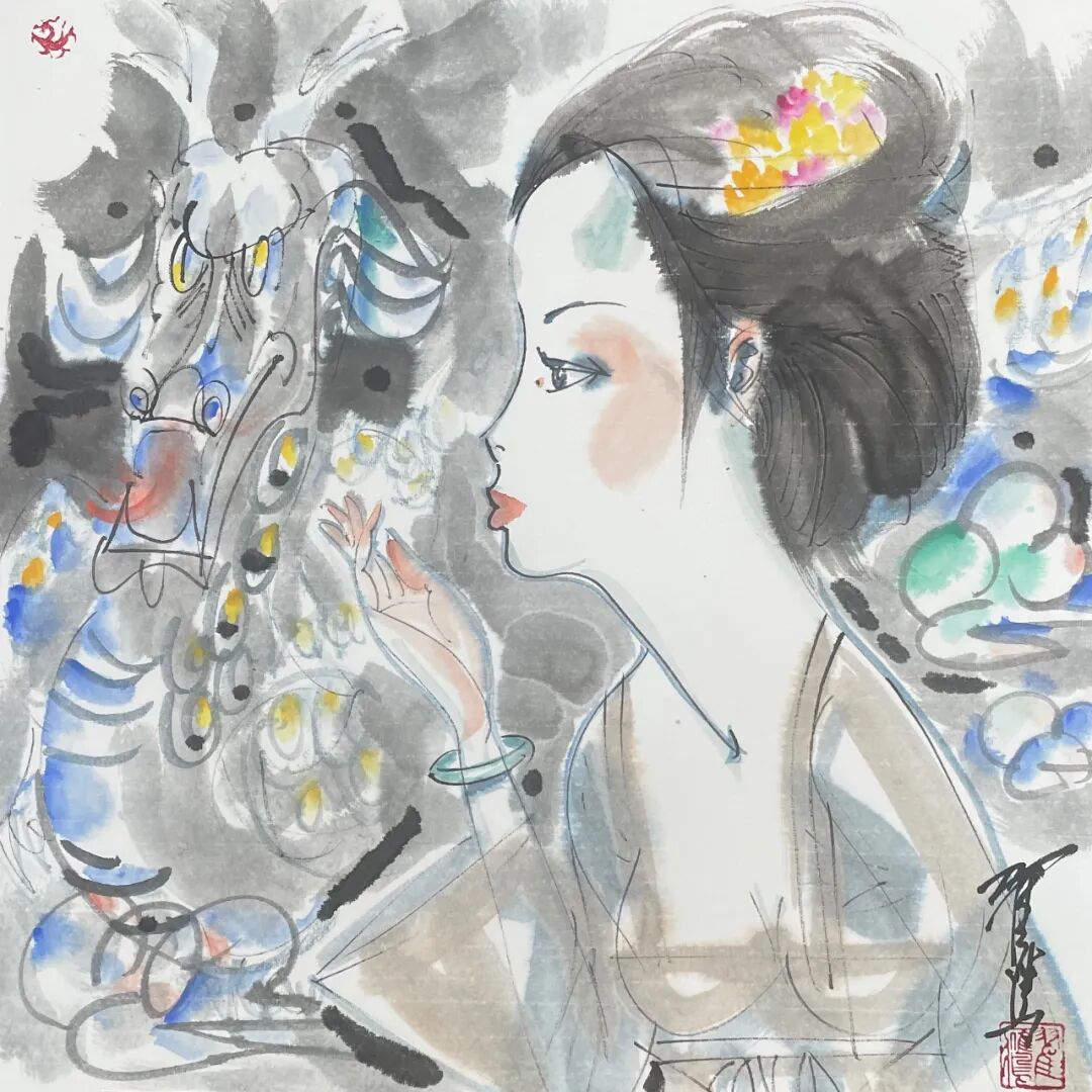 翟鹰 《青龙》纸本水墨 50x50cm 2025