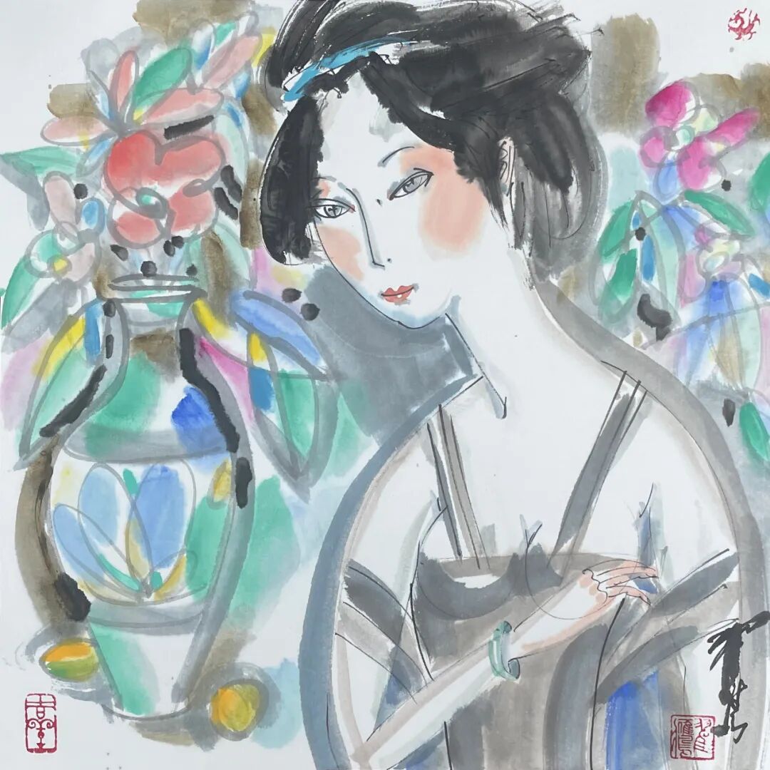 翟鹰 《瓶花》纸本水墨 50x50cm 2025