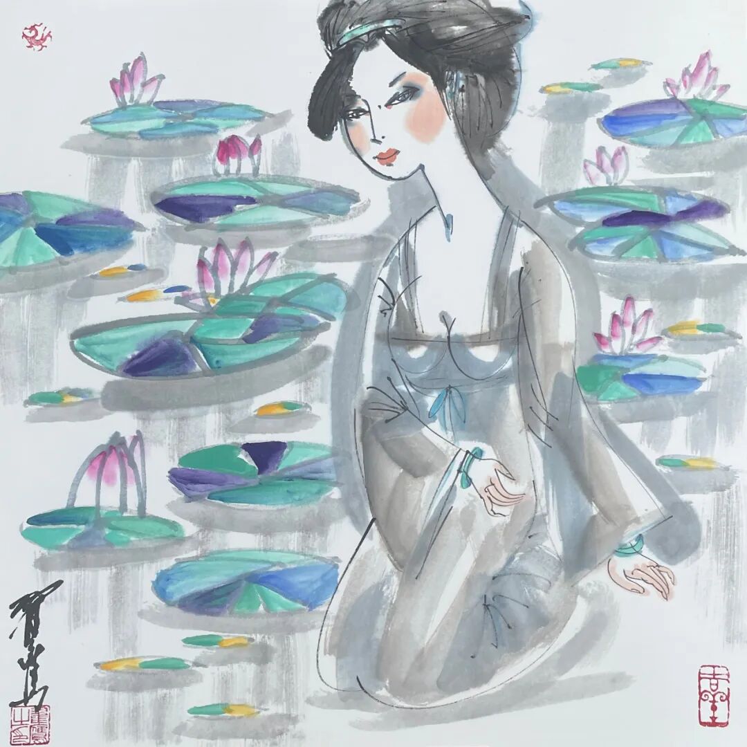 翟鹰 《荷塘》纸本水墨 50x50cm 2025