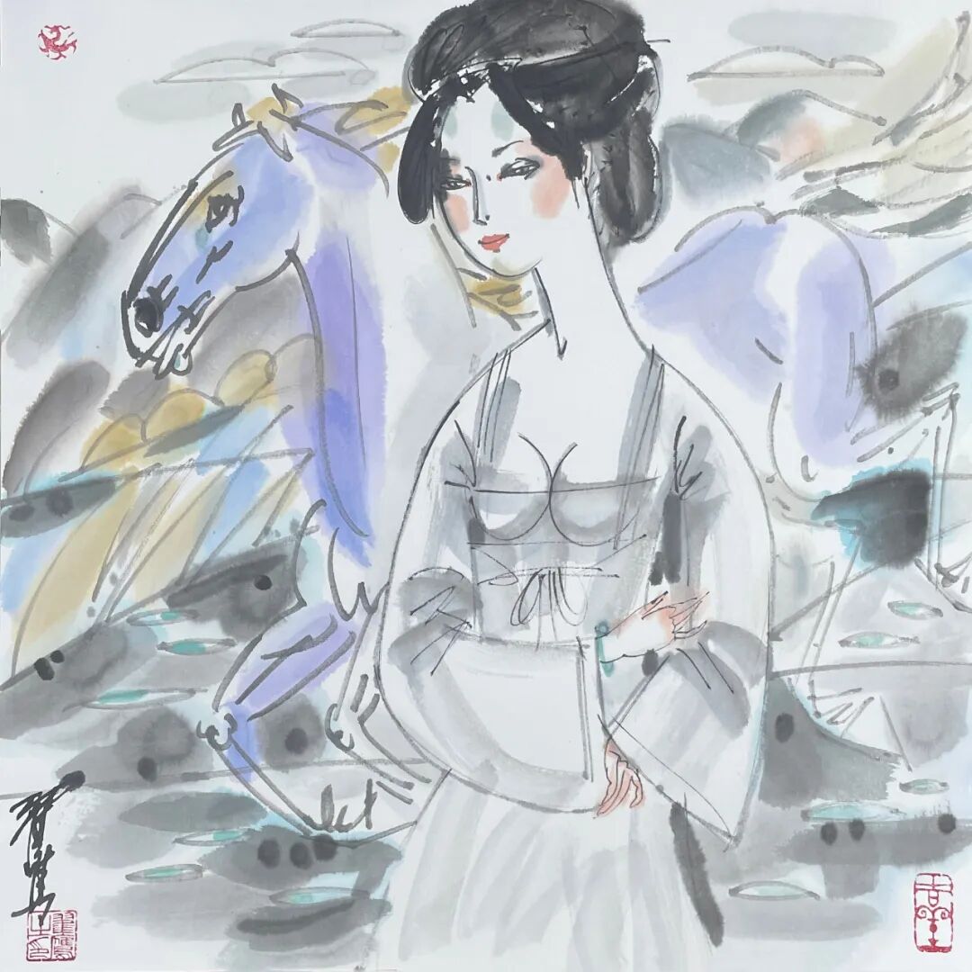 翟鹰 《白马》纸本水墨 50x50cm 2025