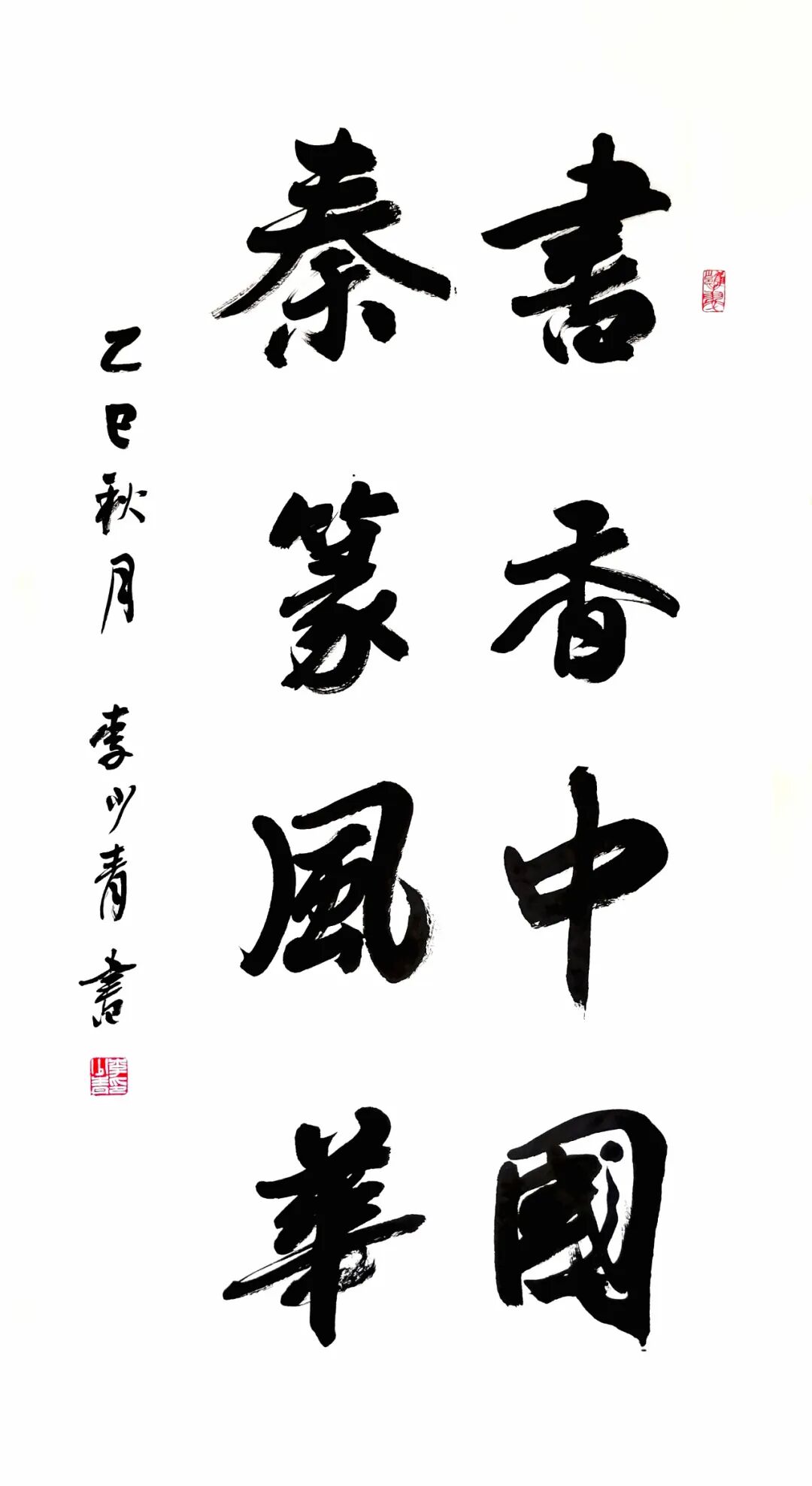 1986年,李少青从北京大学英语系毕业,随后进入新华社国际部,开始了他的职业生涯,曾在埃及和黎巴嫩任记者和编辑。1994年,他转入外交系统,先后派驻日本、新加坡、加拿大温哥华、波黑等国使领馆,历任秘书、领事、政务参赞、临时代办等职。在外交工作的繁忙之余,他始终没有放下手中的毛笔。无论走到哪里,他的行李箱里都放着毛笔和字帖。在炮火中的贝鲁特、多瑙河畔的萨拉热窝,他都曾现场挥毫泼墨,教洋人写“和”字;在温哥华的华人春节庙会上,他也积极参与书法活动,传播中国书法文化。他的书法作品不仅装点了驻外使馆的客厅和走廊,更成为他与各国友人交流的重要媒介。他用书法讲述中国故事,传递中国文化,让世界感受到中国书法艺术的独特魅力。