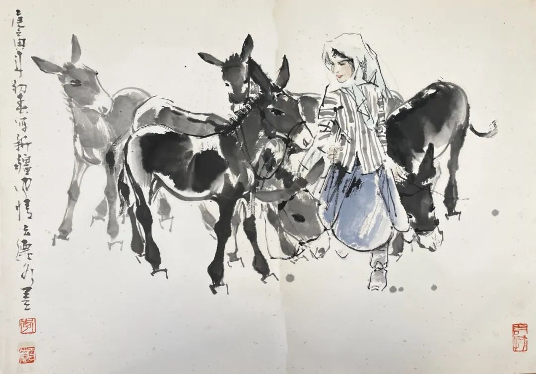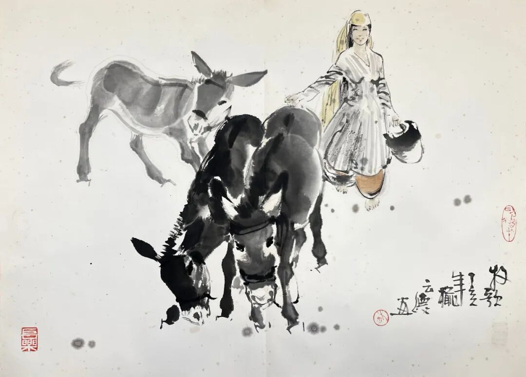 1988年《蕉荫》《牧》《少女》三幅作品入选“中国驻外使馆中国画作品巡回展”作品为驻外使馆收藏。
