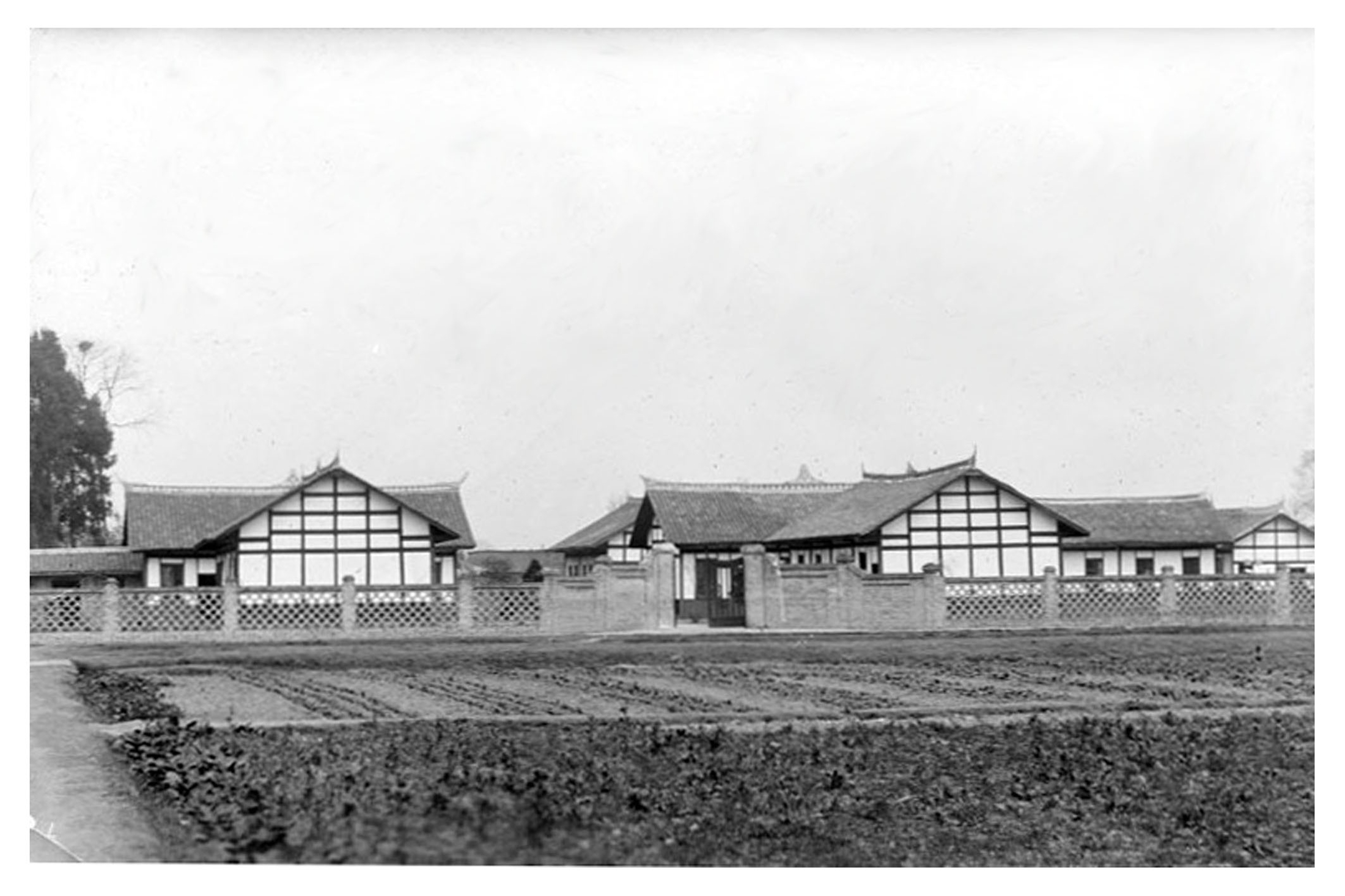 齐鲁大学迁至成都后,在华西坝修建临时校舍。校舍房屋为竹木结构,组合排列形成一座U字形状的院落。齐鲁大学临时校舍的校门,与华西协和大学的校门正好相对,两门西侧是著名的小天竺街。齐鲁大学校门外订着一块门牌,上写“小天竺街76号”。当年只有六七米宽、两华里长的小天竺街上几乎全是小饭店和茶馆。到了星期天,大小茶馆全是学生。坐在靠背小竹椅上,一杯盖碗茶,可以喝一天。于是泡茶馆,喝茶看书,便成了许多学生的第二课堂。