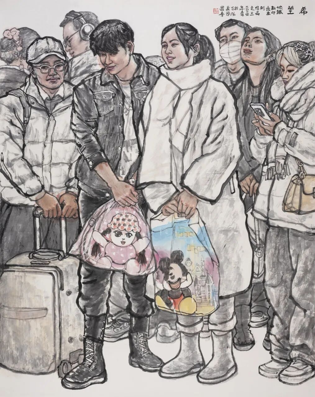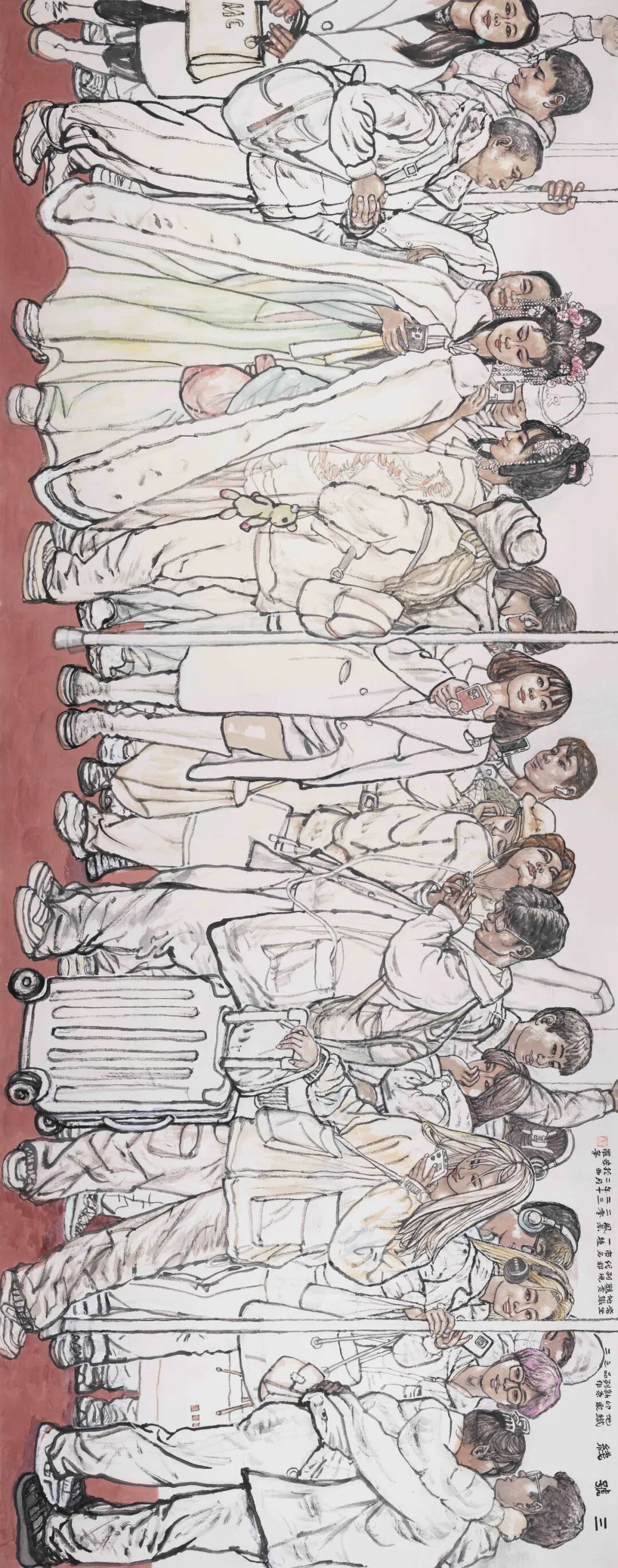 在我的学生中,罗宁与我相识甚早,转眼间已跨越了45个春秋。无论是初次在西安晚报的美编室相见,还是在庙后街文化站美术训练班的日子,罗宁对绘画的热爱,尤其是对速写、插图、连环画的痴迷,始终历历在目。他的数十幅速写作品,正是我为其在西安晚报编发,并引起了广泛关注。后来,我创办西安中国画院离职报社,罗宁却因插画技艺精湛,踏入《文化艺术报》,从美编逐步晋升至总编辑,再后来又被委以陕西国画院书记和副院长的重任。10年后,他担任陕西省美术博物馆馆长,继而成为省美协主席团副主席。在这段时间里,由于工作关系,我们师生之间的交流颇为频繁,他随我一同出访美国、德国等国家,开展交流展览活动。那时,我便注意到他对国外美术馆的浓厚兴趣,将美术馆视为一份重要的事业来经营。罗宁始终秉持大局观念,在美术领域的重要窗口单位,为推举青年艺术家,推动陕西美术事业的发展做出了杰出贡献。他排除万难,独立策划的“高原高原——中国西部美术展”已连续举办七届,赢得了国内外的广泛赞誉。数次在深夜的开幕颁奖活动结束后,目送罗宁挥手送我上车,我为他的这份情怀深深感动……之后,我们共同致力于陕西省中国画学会的创建和学术活动的开展。罗宁广阔的视野、全面扎实的知识储备以及多年积累的组织工作经验,使他成为学会事业发展中不可或缺的核心力量。尽管罗宁在体制内的职务屡有变动,担任陕西省重要美术机构的领导,行政事务繁忙,但他始终秉持初心,即便在艰辛之中,亦不忘抽取时间投身于人物画的创作。他的作品频见于各类展览及媒体,经年累月,已成为陕西画坛一位颇具实力和影响力的代表性画家。中国文联文艺评论工程曾将罗宁的创作历程作为研究对象,以“新时期中国画语言风格探索”为题进行了专题探讨,并出版了《罗宁学术研究》文集以及罗宁中国画作品集。我一直认为罗宁的艺术之路尚处于盛年,他的画作若能进一步沉淀、磨砺,定能举办一次颇具影响力的展览,这是完全有希望的。然而,意想不到的是,罗宁今年已经67岁,距离他在南京、深圳的展览已有十年之久。那时他本想在西安同期举办个展,却因故未能如愿,仅为了配合中国文联文艺评论工程的个案研究,举办了一个小规模的“海上丝绸之路——罗宁惠安女写生展”。如今,伴随着新著《环游世界美术馆——欧洲行》的问世,罗宁重返这片曾经挥洒汗水与梦想的土地,举办一场回顾展,实至名归,顺理成章。纯色挡不住——地铁印象系列之作 180×130cm对于一位艺术机构的管理者来说,创作出如此众多优秀作品实属不易,其背后付出的辛劳与努力不言而喻。罗宁在退休后的几年里依然笔耕不辍,坚持创作,其新作品更是别具一格。特别是近年来创作的地铁系列画作,展现出他在中国画表现都市生活这一领域的深入思考与可贵尝试。罗宁的中国人物画独树一帜,其作品风格鲜明,辨识度极高,在继承后长安画派传统的陕西画坛,罗宁无疑开辟了一条别开生面的探索之路。他的画作并非一味追求长安画派的浑厚苍茫、苦涩老辣,而是展现出一种别致的审美:灵动而轻松、阳光且喜悦、唯美而健康,率真而亲切。这与罗宁的生活态度如出一辙,真挚纯粹,性格使然。罗宁的作品在题材选择上与众多陕西本土画家有所区别,当众人趋之若鹜地描绘陕北人物、关中农民时,罗宁却将目光投向了新疆维族、云南傣族、甘南藏族等少数民族,以及他多次写生的闽南惠安女;在许多人热衷于异地风光人物时,罗宁却聚焦于他所生活的都市,6年如一日地乘坐地铁,创作了百余本、近万幅的速写,进而创作出近20幅地铁人物画作,其中不乏丈二匹大幅作品。这充分体现了一个画家独立思考、独辟蹊径、坚韧不拔的优秀品质。绘画题材的选择是画家个人偏好,无分高下,关键在于画家如何表达对所爱对象的情感。罗宁的人物画创作从民族情结到都市风采的转变,始终贯穿着追求浓郁生活气息的主线,在平凡的日常场景和人物形象中发掘美、呈现美,并从速写中提炼出独具特色的线条语言。在所有题材和表现形式中,都能感受到罗宁年轻阳光的心态,对民族人物的深厚情感,以及对现代都市的热爱。在长期的探索实践中,罗宁的人物画创作能力不断提高,无论是构图严谨的大幅主题创作,还是情趣盎然、笔墨灵动的小品,都彰显着他对现代人物画的探索与追求,如《惠风》《明天会更好》《生命》《嘎洒早市》等作品,均在全国重要美展中入选。罗宁作为受过西方造型训练的中国画家,在传承与创新、造像与笔墨等方面曾面临不少困惑,但他凭借对美术史论的深入研究,成功化解了实践中的难题。他的数件大幅作品,经过多次尝试,展现了他对中国人物画表现形式的多元探索,令人欣喜。在绘画创作取得成就的同时,退休后的罗宁还致力于美术文化的推广与传播,不仅撰写了介绍欧洲优秀艺术博物馆的著作,还制作了200余期短视频,普及艺术文化。这份努力是巨大的,精神令人感动。联系他近几年都市题材的新作,正展现了这个时代对艺术家的呼唤:与时代同步。画画是一生的事业,对于从事中国画的画家而言,在岁月的洗礼中,生命意识的觉醒至关重要。我相信罗宁会深刻领悟这一点,在追求艺术道的同时,技艺问题也将迎刃而解。我与罗宁等几位学生经常探讨这些问题,无论在国内还是国外,无
