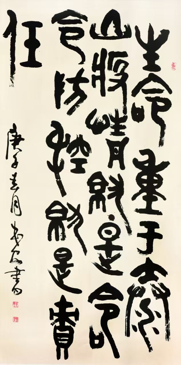 元广先生其时尚健,主讲行楷,上课十足尽责。书史书论、书艺书法无不涉足,提按顿挫、起收捻转无不提及,或讲或写纵横捭阖,无不从容。惟新先生主讲工笔,上课从来是知无不言言无不尽,且工写兼论条分缕析,深入浅出随形赋彩。岱峰先生课时不多,但功夫扎实作风老到,笔墨开合间立见功夫。路钰先生主讲墨竹与雪画,近耄耋之人仍精神抖擞,所画之竹皆迎风挺立骨骼清奇,雪画则玉树琼枝粉妆玉砌。予欣和太曾二位先生主讲书法,欣行草,曾主篆,讲课皆轻车熟道巧发奇中,行笔则雄深雅健收放自如。