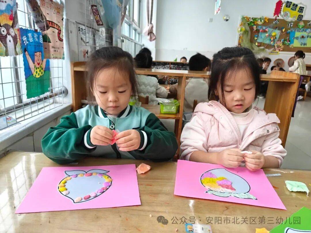 通过揉、捏、团、贴等精细动作,孩子们制作了圆润可爱、五彩斑斓的“寿桃”。