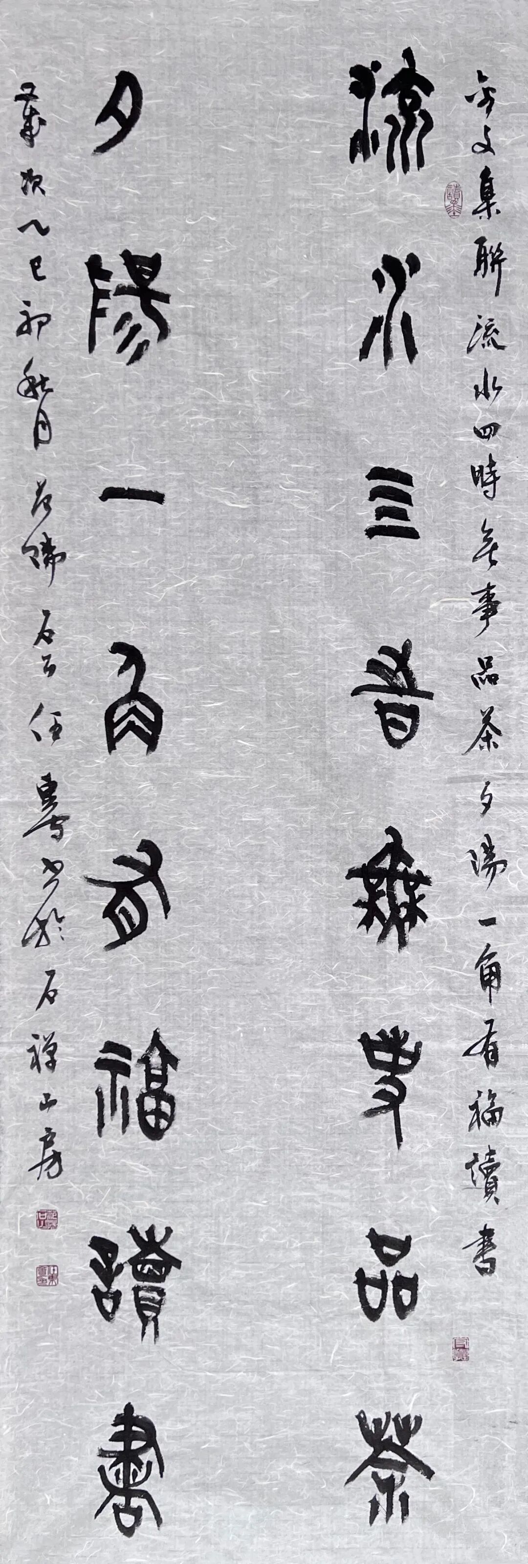 任东会 号石公,居曰石禅山房。1963年出生于河北省定兴县。幼承家训,书法初习唐楷颜勤礼碑,继学汉隶,遍临汉碑多种,兼习行草、魏碑,后上追三代金文,得力于《季子白盘》、《散氏盘》。手摹心追,临池不辍。以行草笔意入篆隶,其线条质朴而不失率意,喜浑劲静穆、平中寓巧一脉书风。篆刻从汉印入手,参学历代诸家。印风古穆典雅。奏石临池之余,喜读书,好交友。性爽而豁达。深谙学书之道功在字外之理,为艺之道须从传统文化宝库中汲取足够营养,广收博取,创新求变乃水到渠成之事。全国首届册页书法展监审;四次荣获河北省企业界书法一等奖。曾获中国石油“德艺双馨”奖,荣获“中国石油书法家”称号。现为中国书法家协会会员,河北省书法家协会主席团委员, 石公书画院院长。