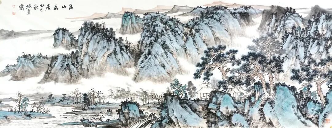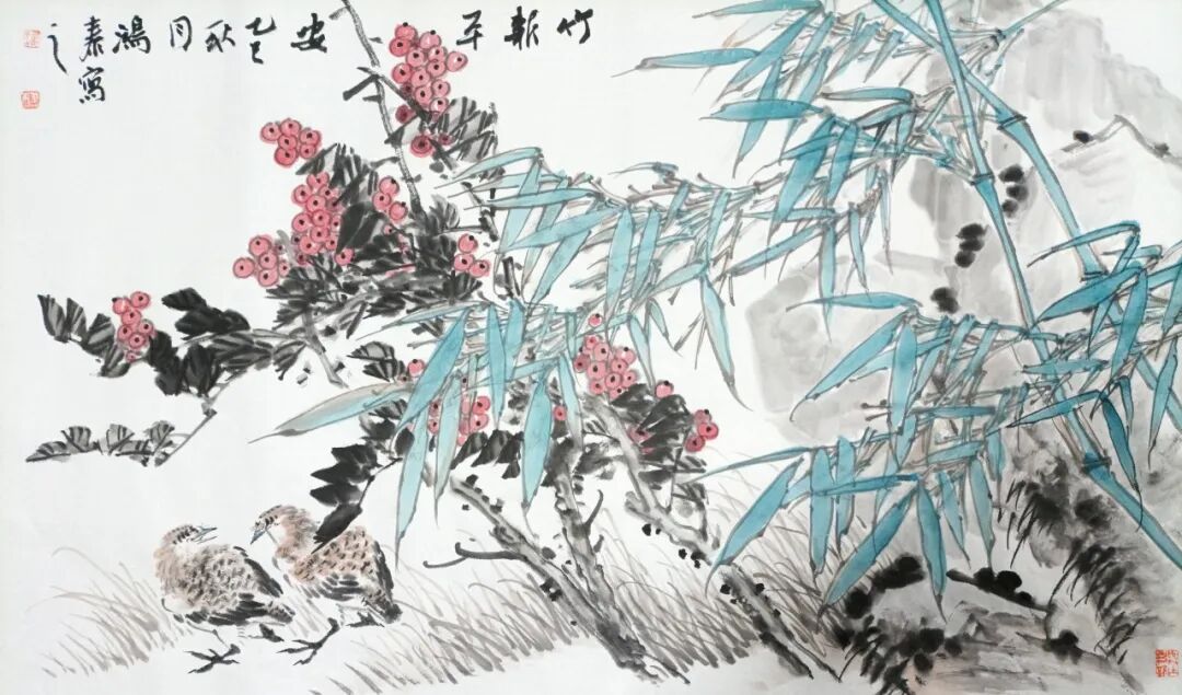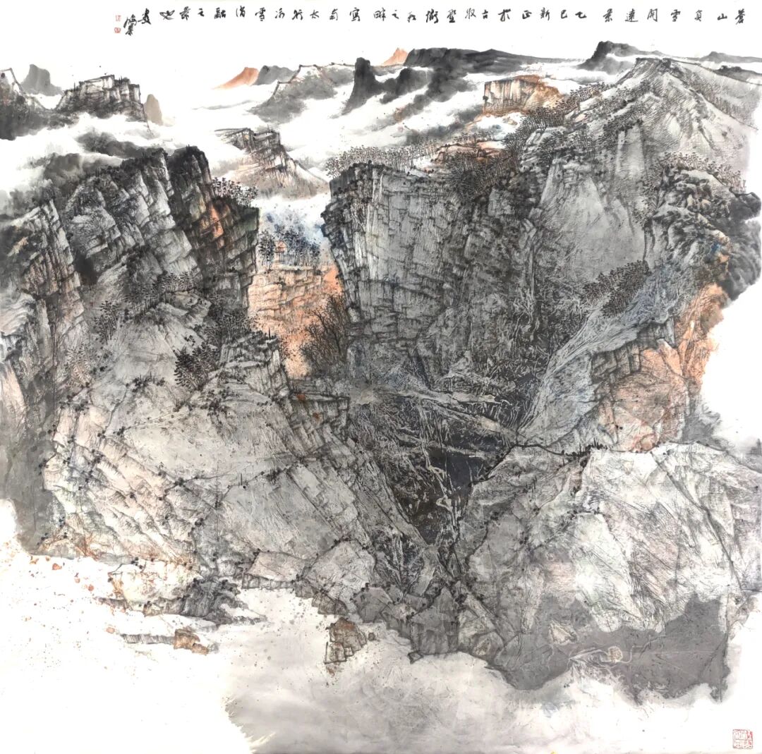 壮岁解甲,益潜心精进,融北骨南韵,兼俊逸清新。尝谓:“画乃心性流露,若无学养根底,失本真性情,则愈工愈匠,愈丽愈俗。”观其太行巨幅,气象恢弘,花鸟草木,蕴古出新。守笔墨传统,而融透视西法;破程式桎梏,自具天然精神。故其笔底,兼有造型之准、内涵之厚、神韵之灵、风骨之峻。