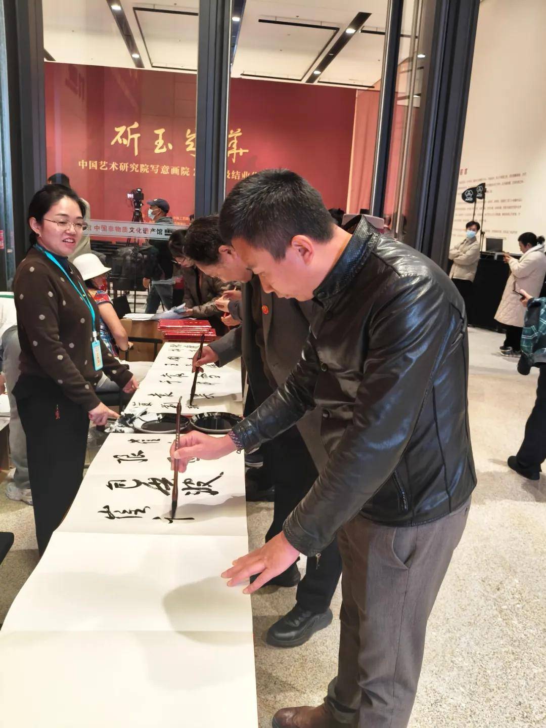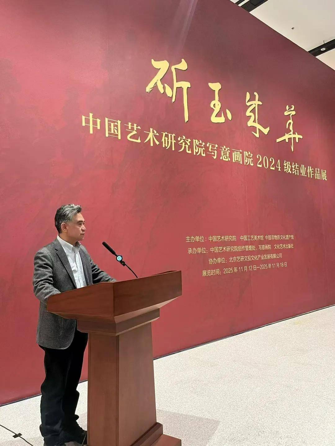 2025年11月15日下午2点30分;导师包洪波、助教刘新安应邀参加:斫玉成华——中国艺术研究院写意画院2024级结业作品展开幕式!随行人员北京尚宁堂文化传播有限公司总经理苏宁、副经理崔福雷、首都画廊总经理路忠银。