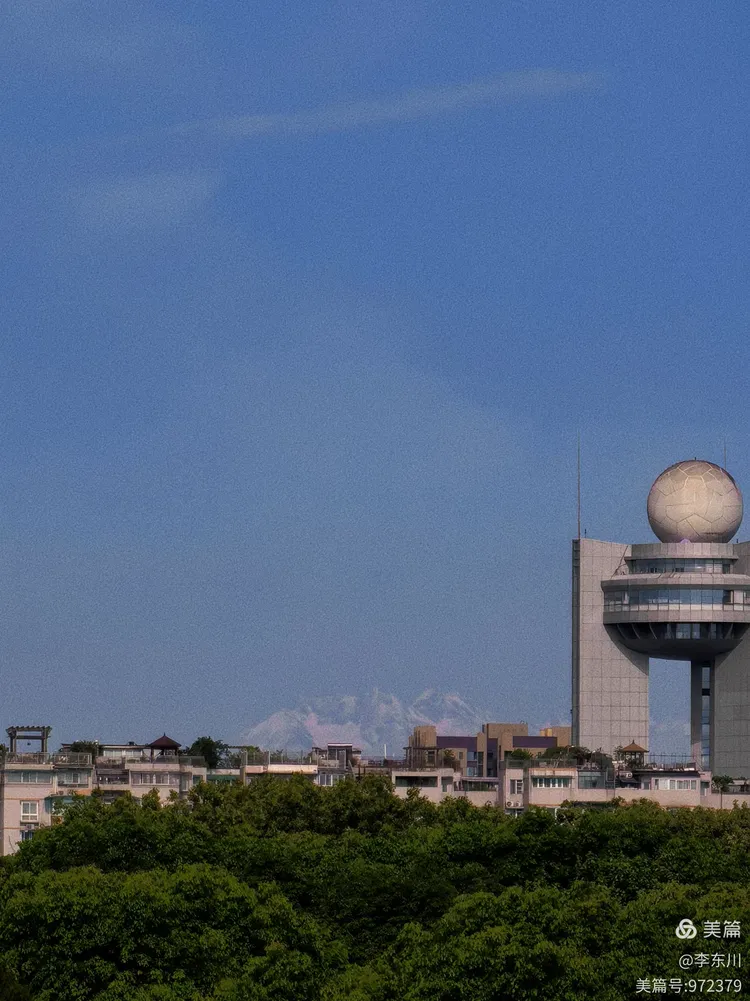 和导游倪华香分别后,她给我寄来了她拍摄的“西岭千秋雪”照片,心中忽生发无限的感慨:虽然相隔一千多年了,我们和杜甫还可以在一起欣赏这“西岭”美景。