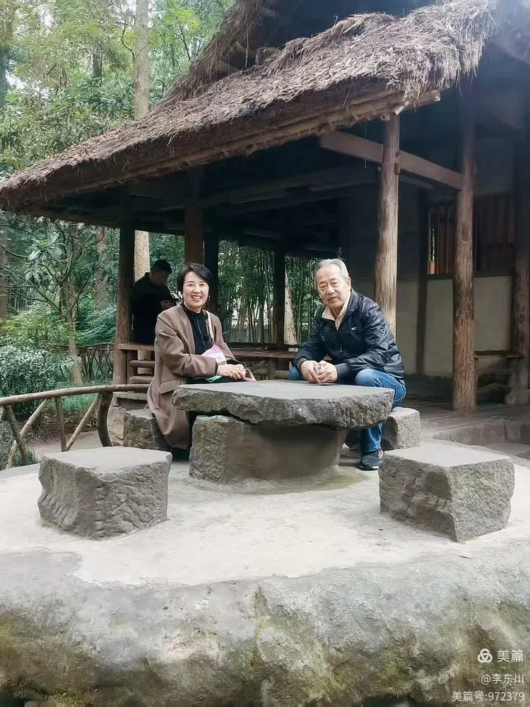 听讲解的游客散去后,我和导游倪华香坐在草堂外的石盘上继续交谈,她说“杜甫给妻子写的诗比给李白和诸葛亮写的诗都多”,其中的“老妻画纸为棋局,稚子敲针为钓钩。”,“我们坐在这里的这个石盘,就是复原诗里的那个棋盘”。当我感谢她精彩的解说时,她说自己是用解说致敬杜甫,诠释自己对杜甫和那个时代的理解。