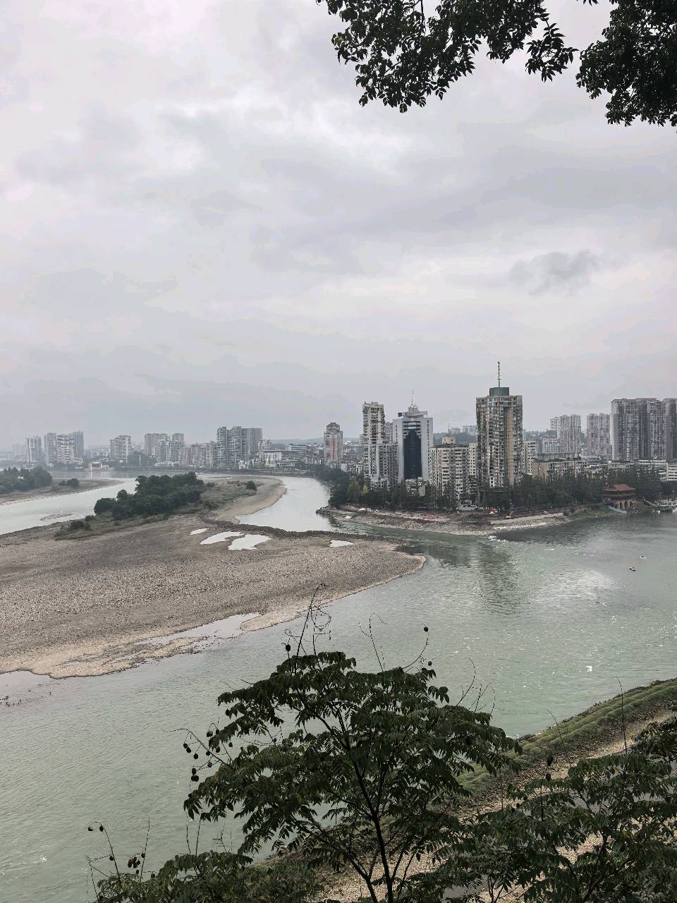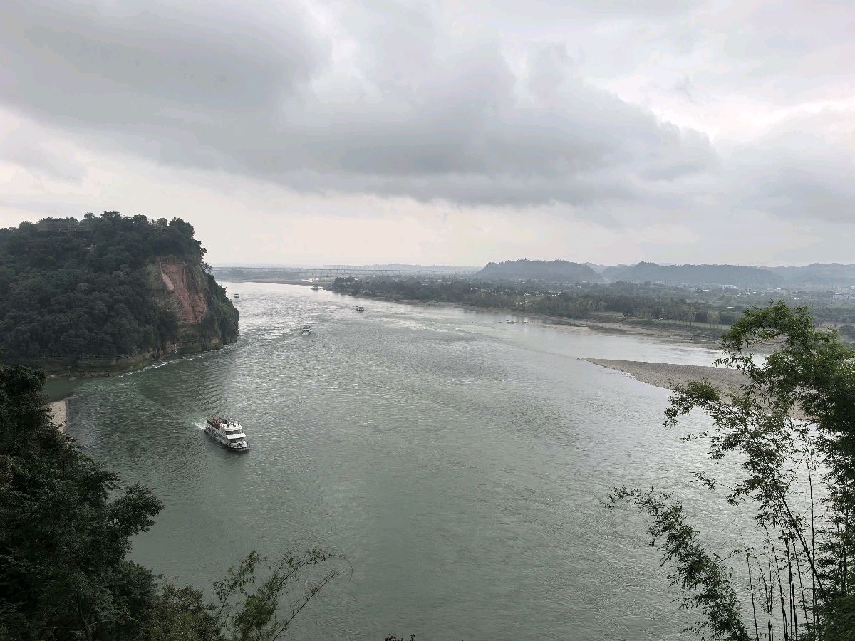 峨眉雪顶浮云外,九曲栈前绕水滨。
