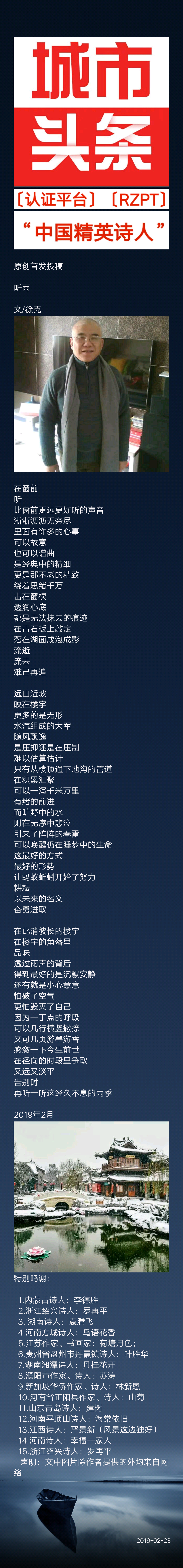 平顶山头条向全球发布诗人徐克精品诗歌