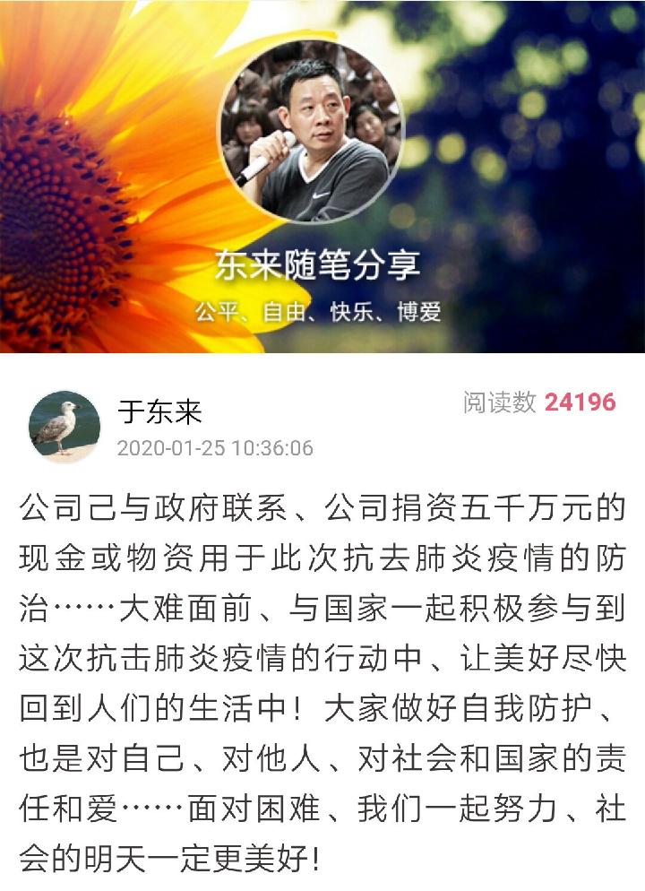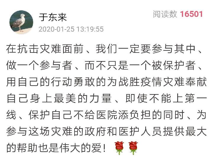疫情面前,方显人性本色,人情大爱,于东来,我们为你鼓掌、骄傲……