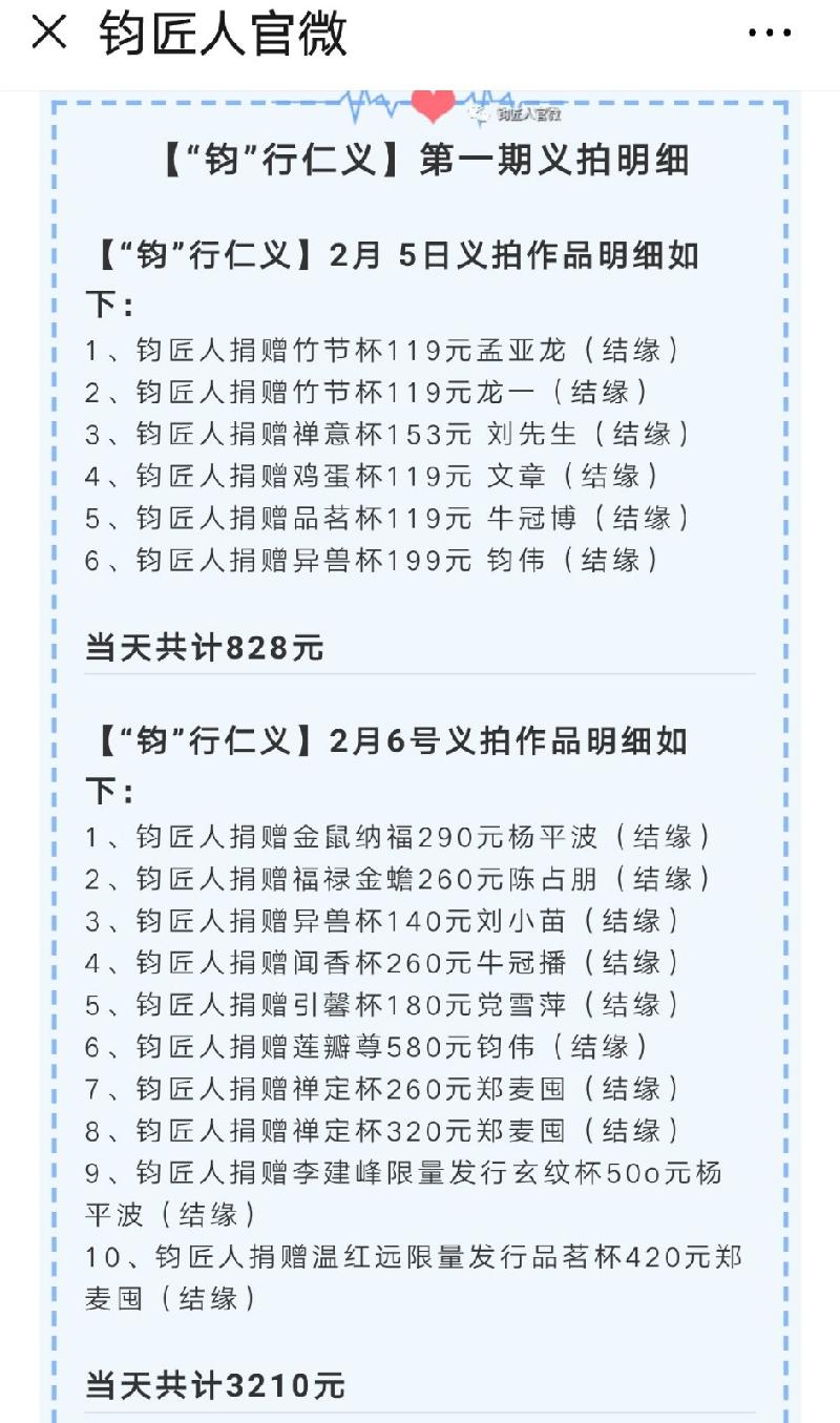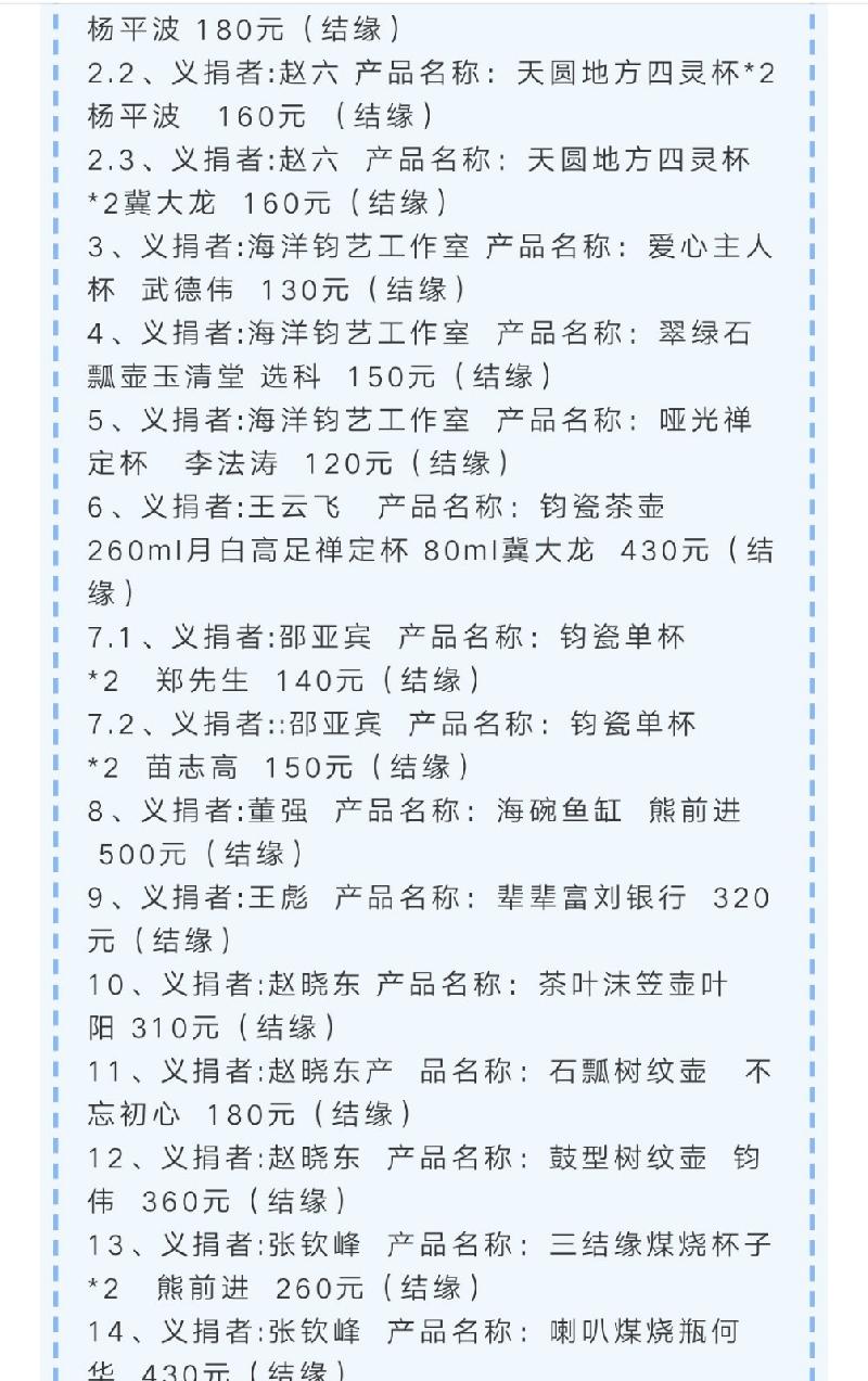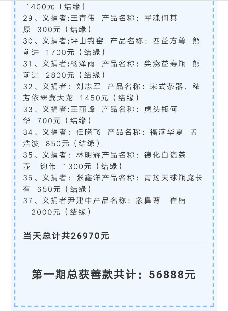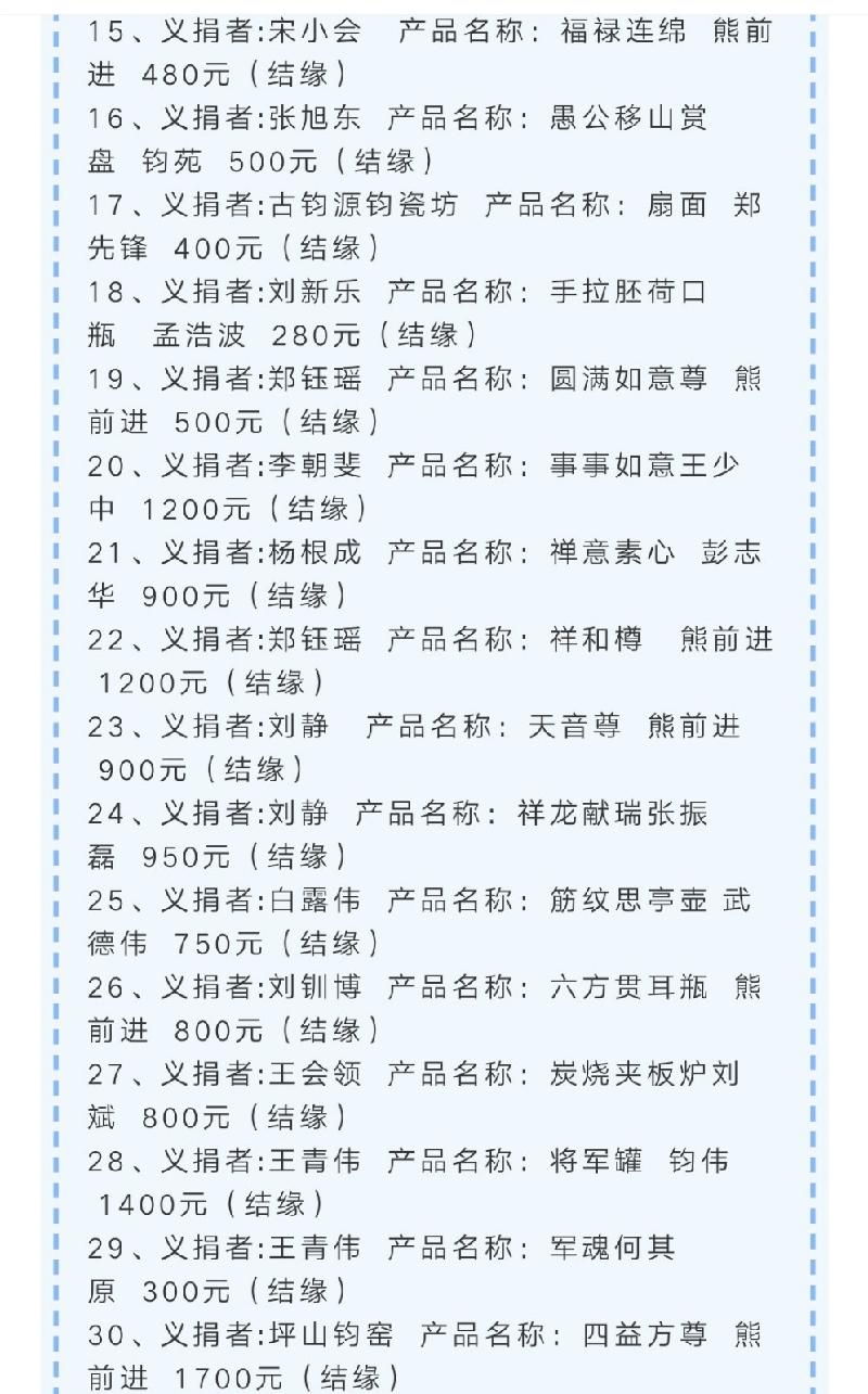 附图《钧匠人官微》公布的义捐名单: