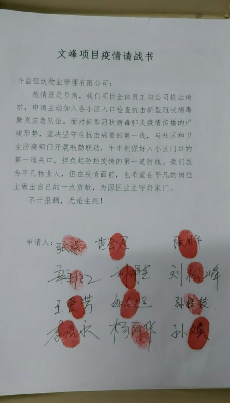 文峰项目部组织召开了员工动员大会,大家份纷踊跃请战,并在请战书上签字。
