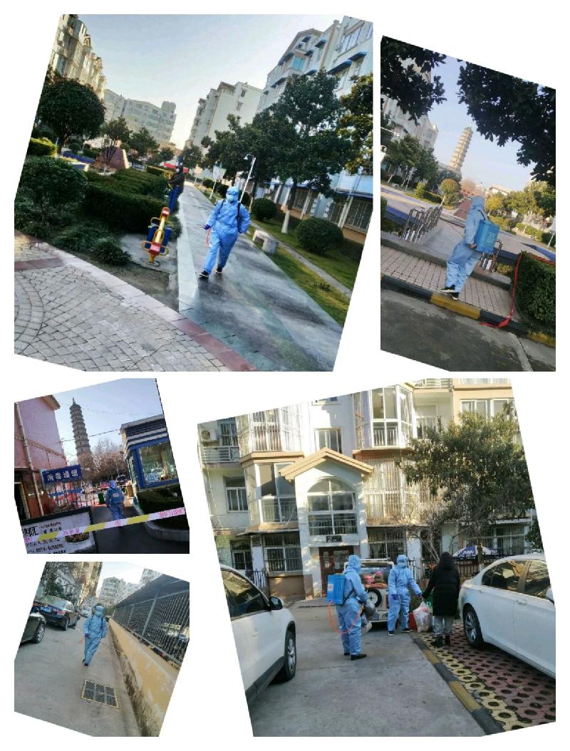 消毒人员背着几十斤重的药桶,累得汗流浃背,他们从不叫苦叫累,只为了小区业主的安全。