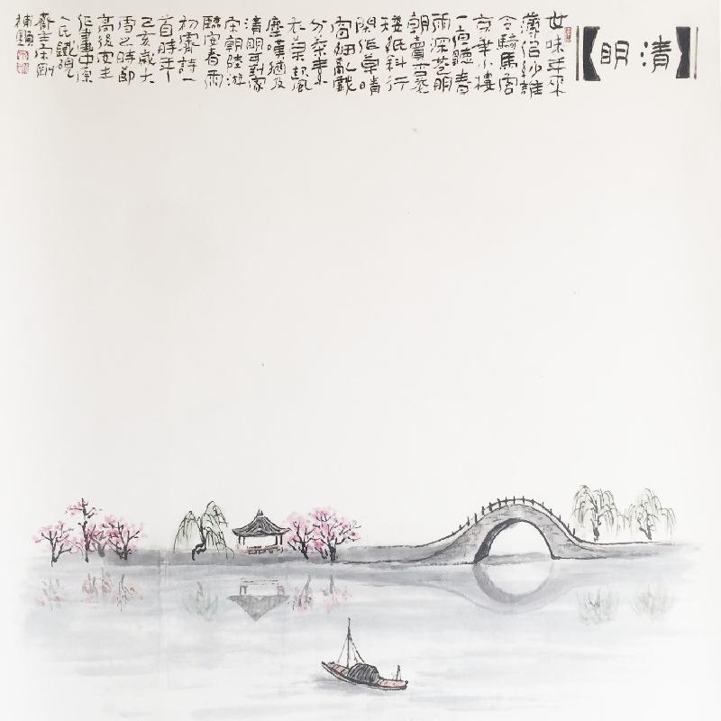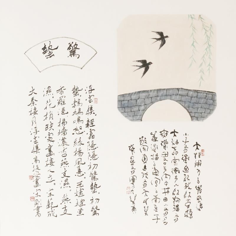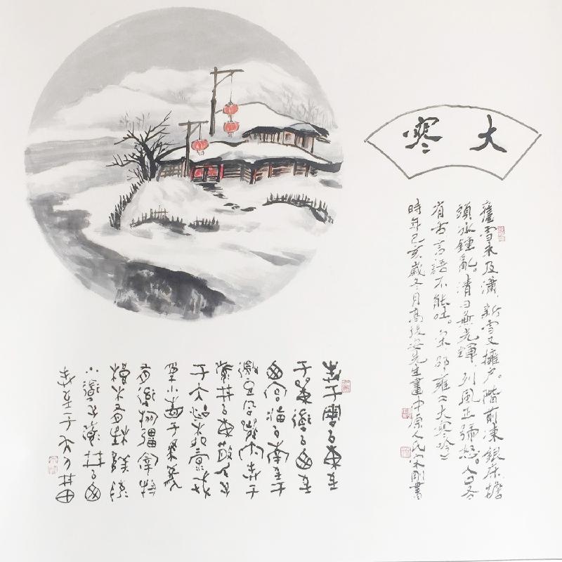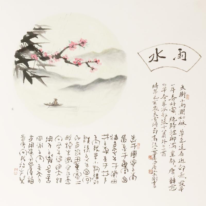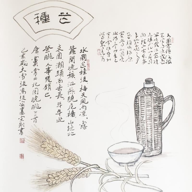 这一组节气图,诗、书、画三位一体,画风简洁淡雅,画面干净利落,布局疏淡有方,颇具看点……
