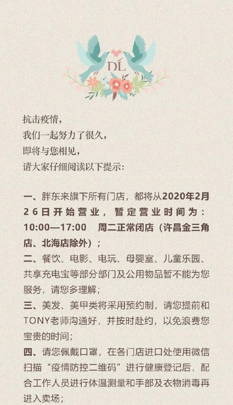 胖东来官宣,旗下所有门店,都将从2020年2月26日开始营业!