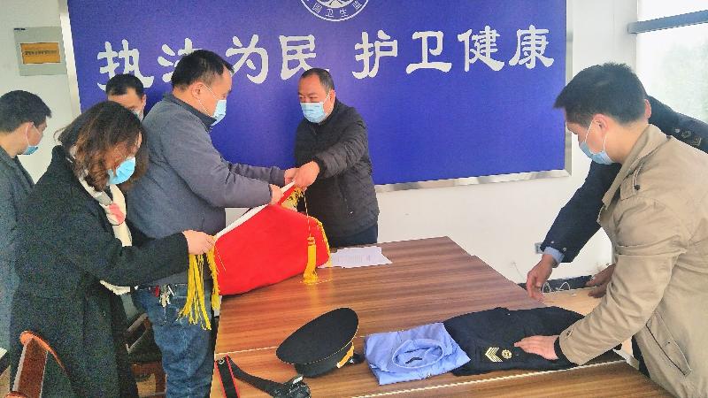捐赠品有卫生监督所制服一套、致全所党员的倡议书、单位人员的决心书、群众为感谢全体人员的一面锦旗以及战“疫”时期的视频、图片资料等。
