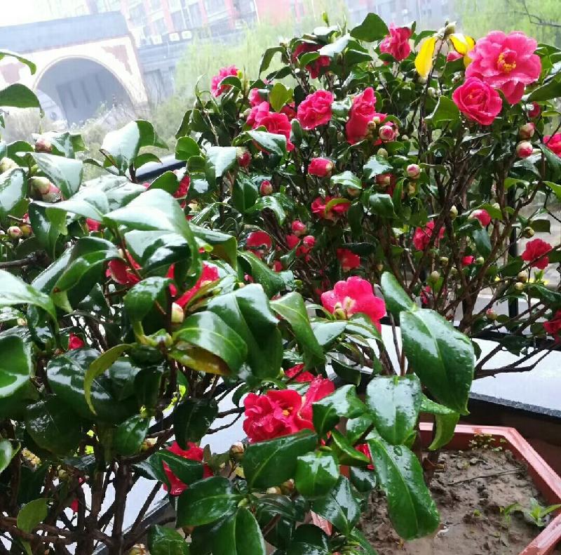 兰蕙阳台秀,对露台茶树,娇蕊丹靥。
