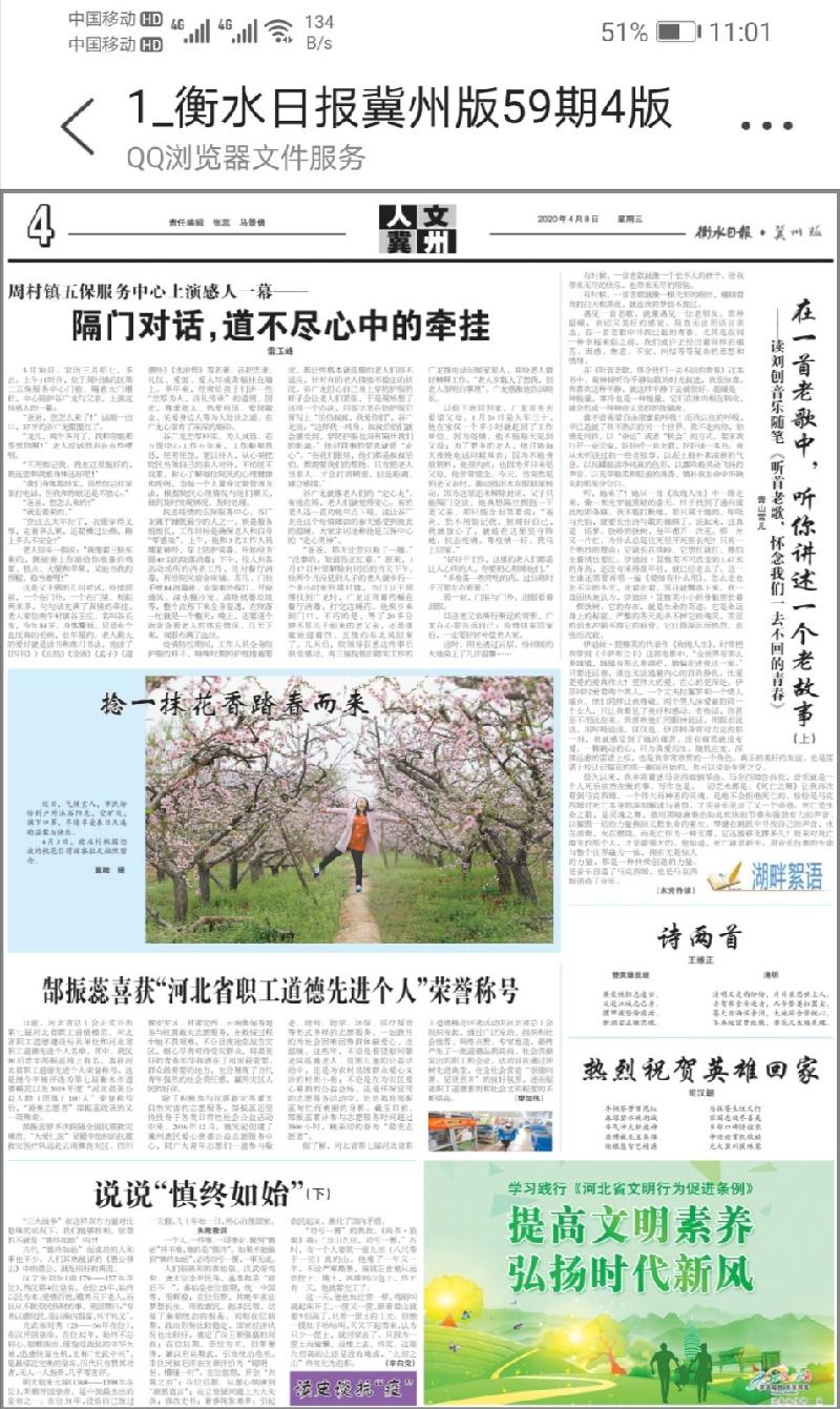 据悉,2月5日,冀州区由牛奥炬、李森2名医护人员组成的援鄂应急医疗小分队,驰援新型冠状病毒感染的肺炎疫情高发区湖北省武汉市。从2月25日坚定出征武汉,到平安返回衡水,在武汉日日夜夜里,两名同志义无反顾冲向最前线,用生命守护生命,以崇高的医德、精湛的医术、过硬的作风,筑起了一道坚不可摧的防疫“堤坝”,出色地完成了救治任务。