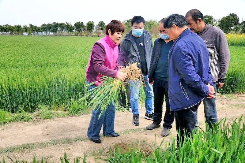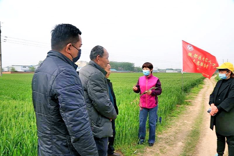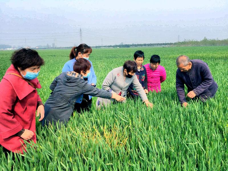 魏都区第十三批拔尖人才刘会娟(左一)在讲解小麦条锈病的相关知识