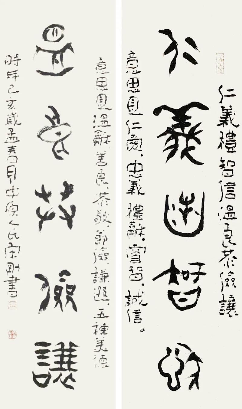 《仁义礼智信》 《温良恭俭让》 138cmx34.5cmx2
