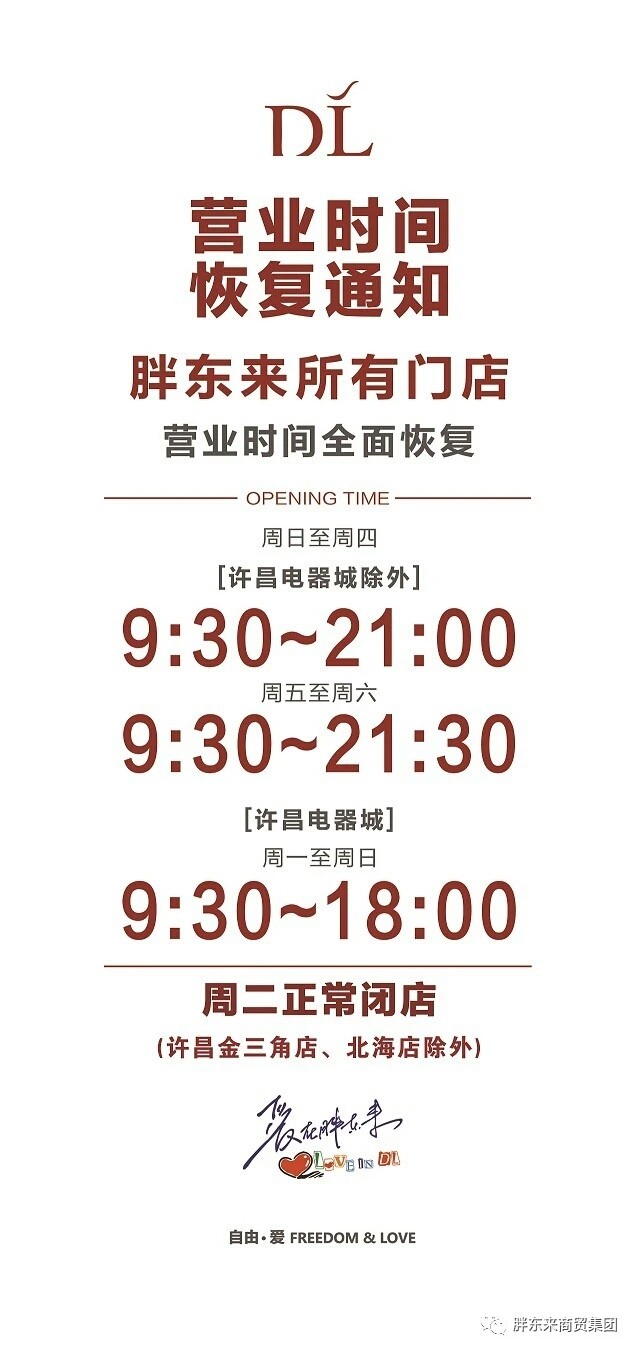 \ 河南·许昌·《胖东来官宣:营业时间恢复通知》