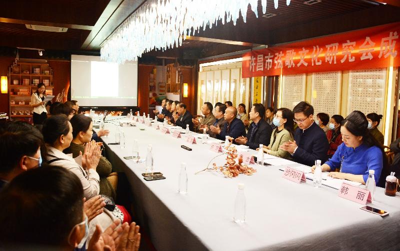 经过近一年的筹备,4月24日,来自许昌市文化广电和旅游局、许昌市民政局、许昌市诗词学会、许昌市音乐家协会古琴研究会、魏都区作协、魏都区诗词学会等单位的相关人员齐聚一堂,共同见证许昌市弦歌文化研究会成立。该研究会成员一致同意并通过了组织章程、第一届理事会成员名单,选举沙闪闪为研究会会长,王捷教授为名誉会长。