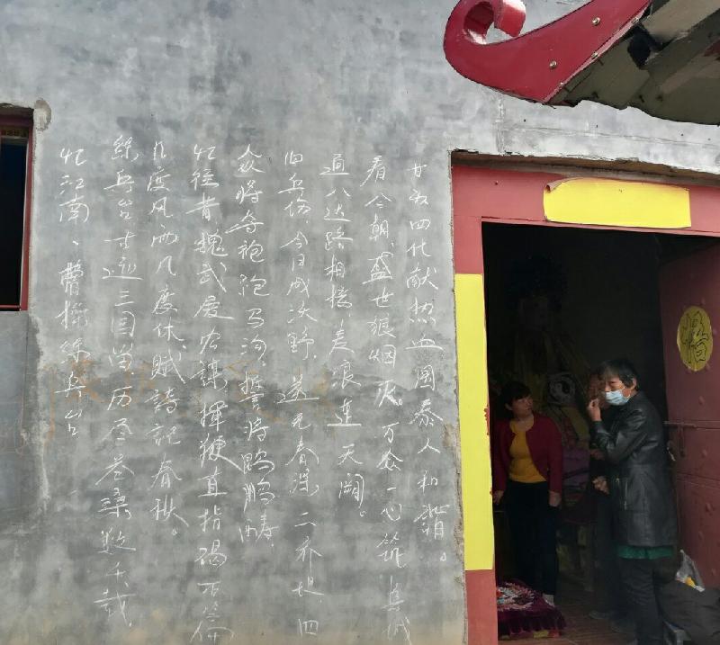 房子外墙,粉笔或石块题的两首词很醒目:《忆江南·曹操练兵台》《青玉案·曹操练兵台》,尽管作者没有留下姓名。练兵台全景