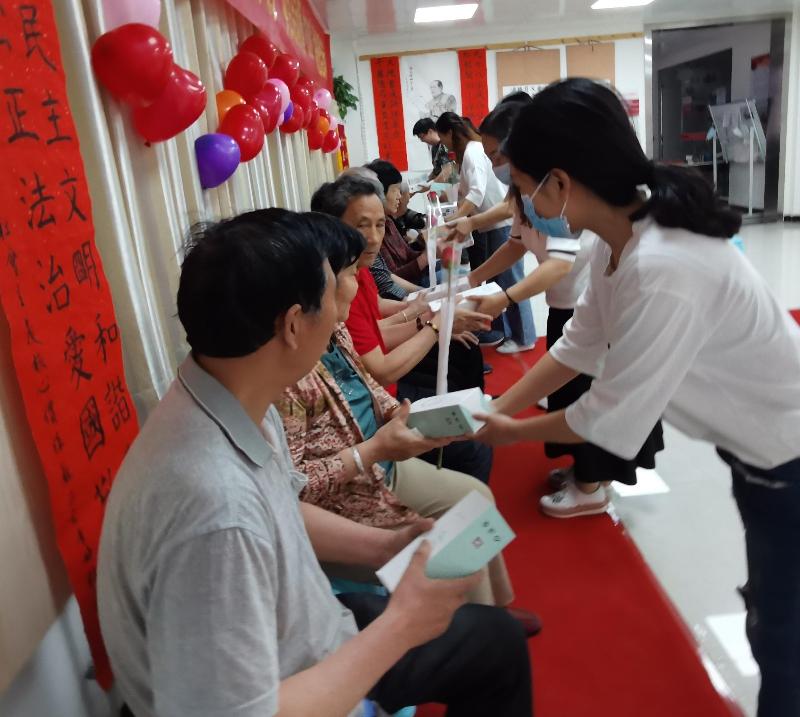 活动第四项:社区工作人员为每人送上水杯,寓意是祝每对幸福的老人幸福一辈子