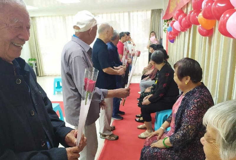 活动第二项:各位老人向老伴献上玫瑰花