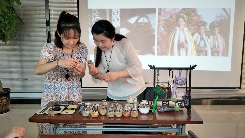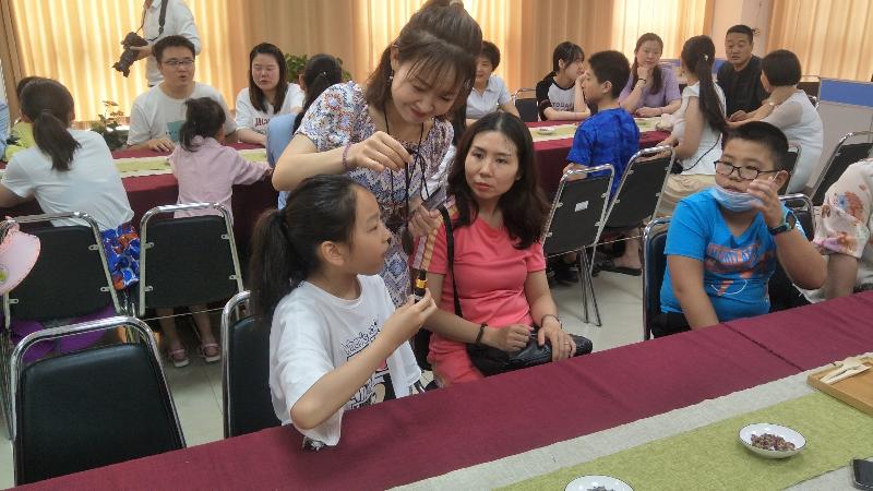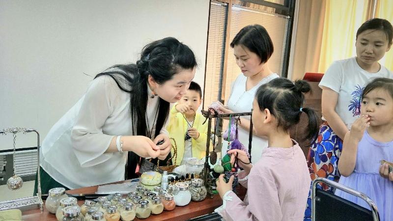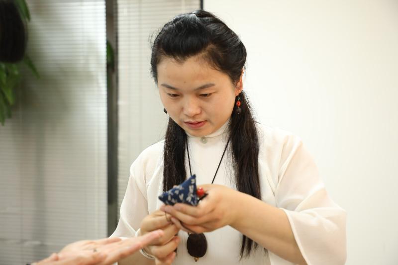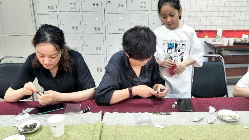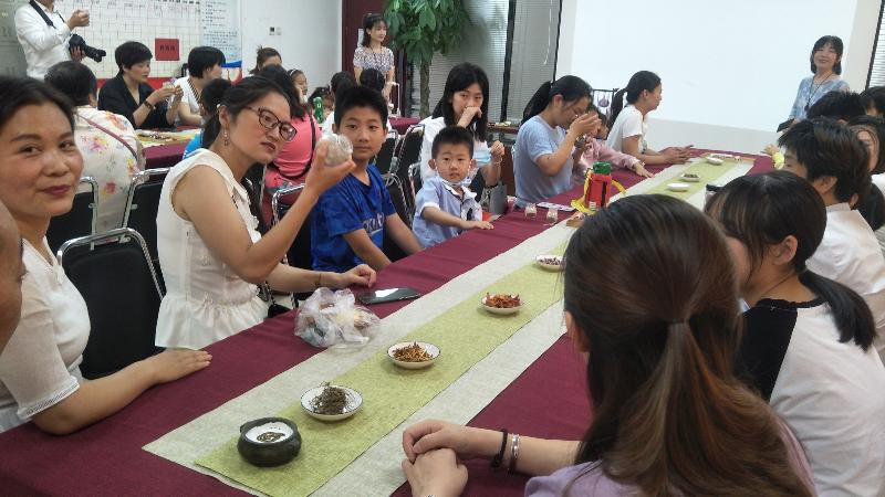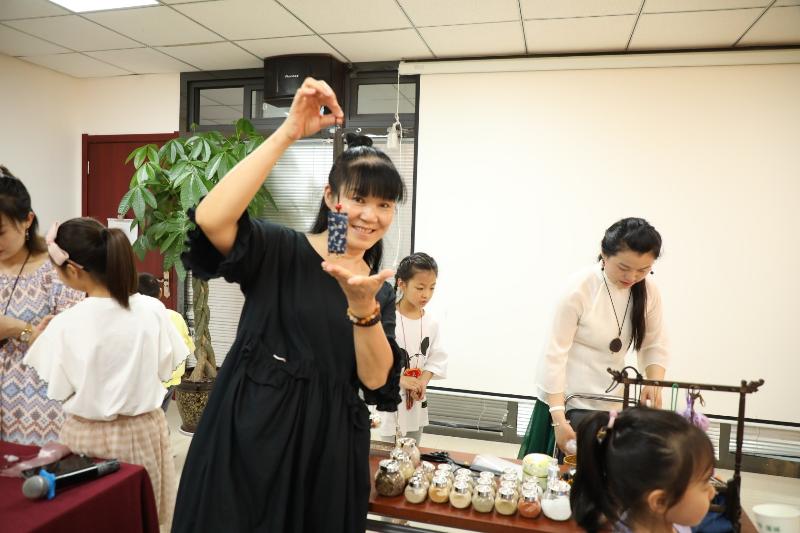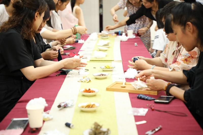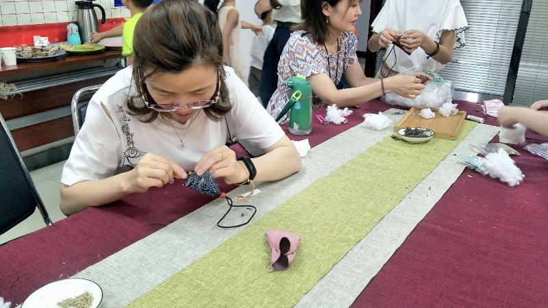 闻香品香结束后,若源老师开始讲解香囊的制作,大家跃跃欲试,拿到布料及制作材料,按照老师的讲解和指导,开始自己动手制作驱蚊香囊。在场的孩子比家长更兴奋和热心,在家长的辅助下加上自己的动手能力,都最后完成了香囊制作。动手技术欠佳的小编先选了自己喜欢的各种香料,直接求助若源老师帮忙,成功的完成一个驱蚊香囊作品,非常开心。 今年的端午恰逢父亲节,一份亲手制作的香囊礼物,送给爸爸一辈子珍藏,惊不惊喜?!意不意外?!