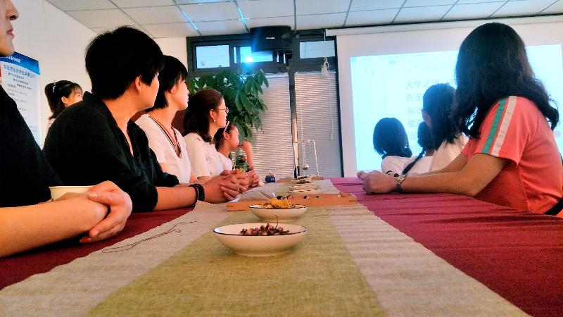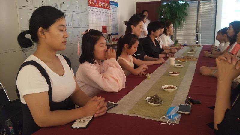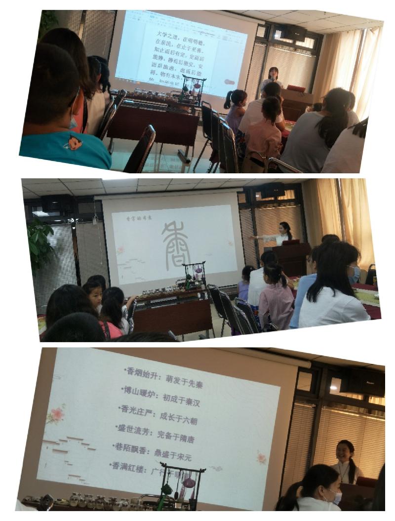 约定的时间是九点开讲,报名人员二十人截止。开讲时会议室已经满员而且远远超员。报名的人员有部分带着孩子来参加体验香道文化。