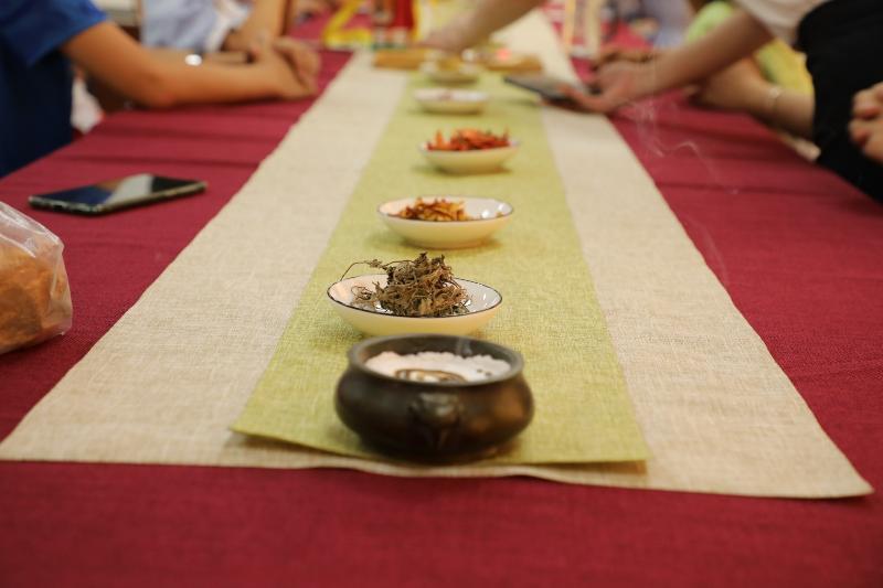 香道,是通过眼观,手触,鼻嗅等品香形式对名贵香料进行全身心的鉴赏和感悟。香道师语音轻柔的香道文化普及,主持人带领大家诵读温习有关国学文化。现场参与者认真而专注。香道师若源现场展现闻香、识香、体会香道。现场具有一种久违的温馨感、秩序感、仪式感。