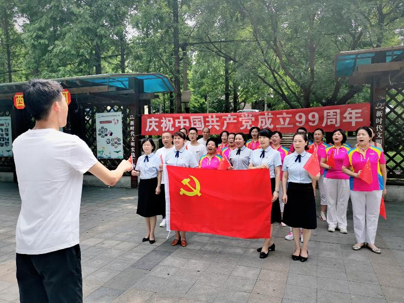 党旗飘扬,红歌嘹亮。为庆祝中国共产党成立99周年,重温党的光辉历史,继承和发扬党的光荣传统和优良作风,持续深化社会主义核心价值观宣传教育,河南省许昌市魏都区文峰办事处河西社区党总支组织开展了一系列庆祝活动,献礼党的99岁生日。
